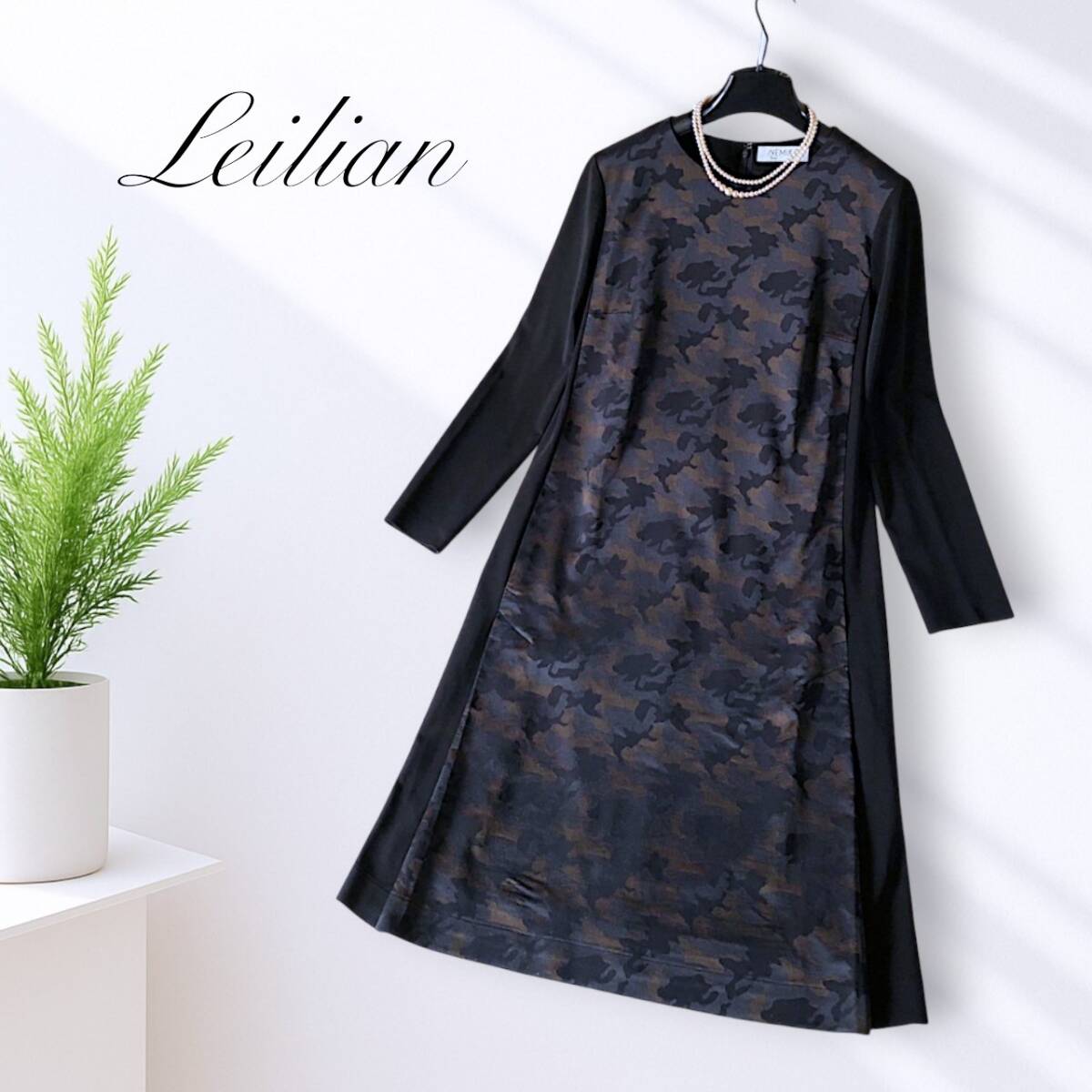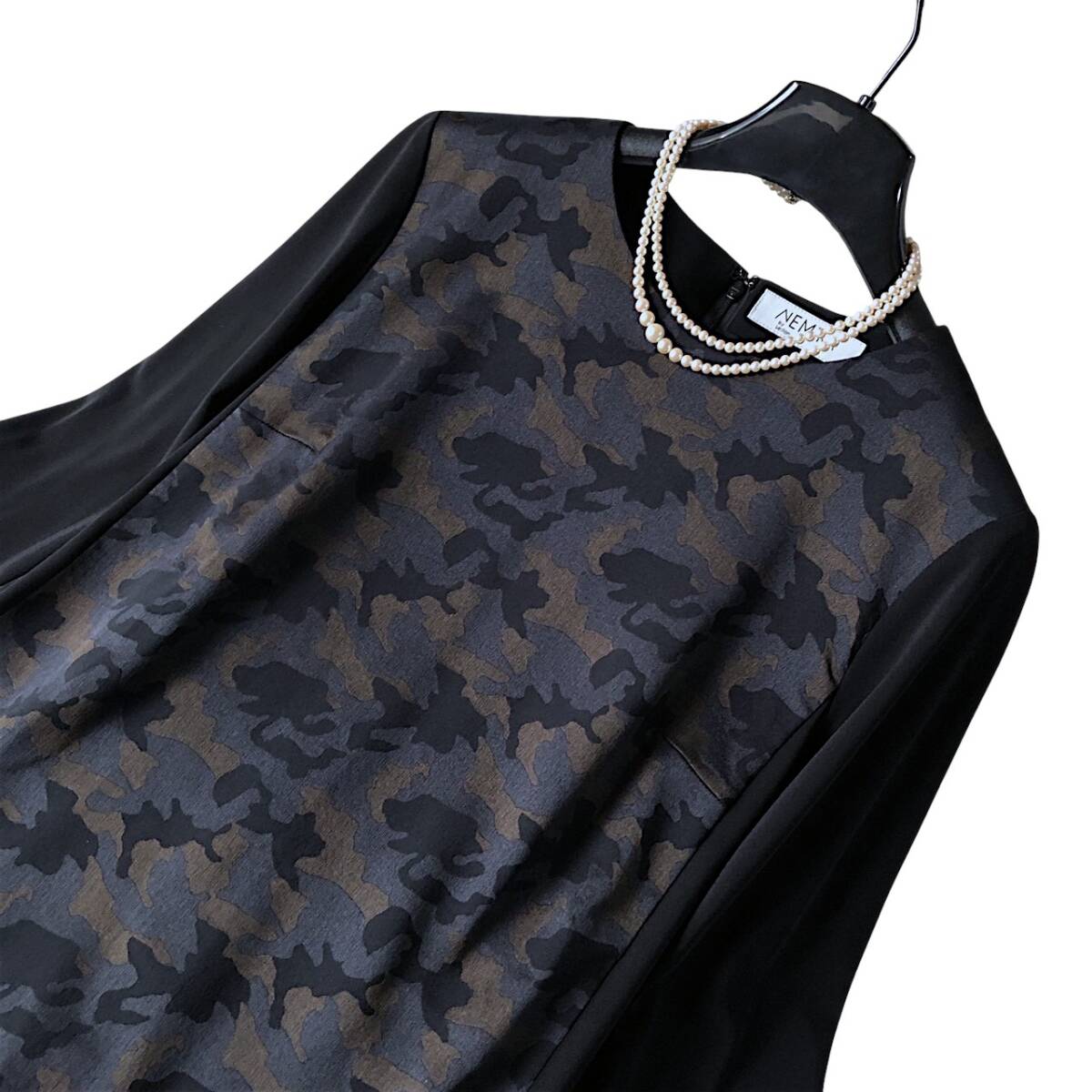 B09◆極美品 レリアン Leilian NEMIKA ネミカ 大きいサイズ 11 L ゆったり ワンピース シャドー カモフラ 迷彩 ストレッチ カモフラージュ