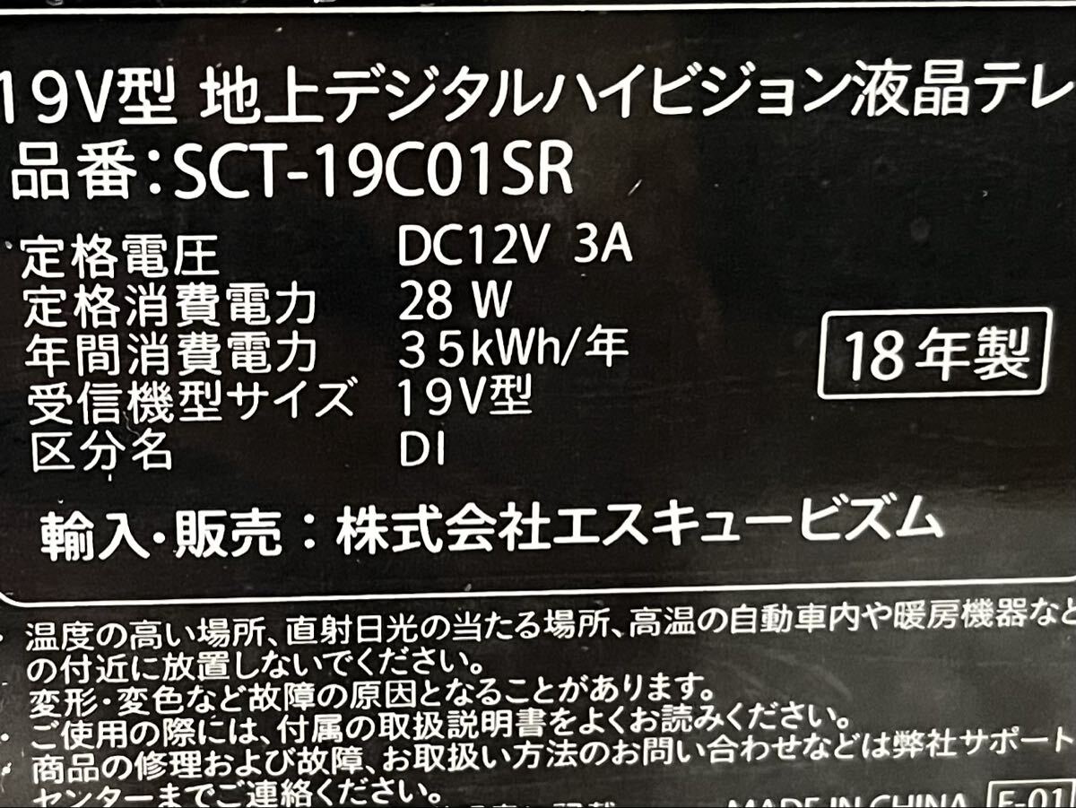 S-cubism 19インチ液晶テレビ AT-19C01SR 2018年製になります。