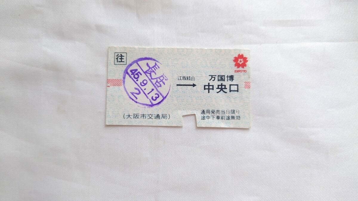 ▼大阪市交通局▼長居→万国博中央口 軟券乗車券 昭和45年▼EXPO'70大阪万博