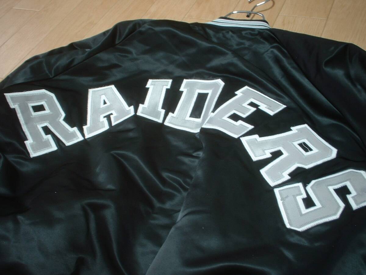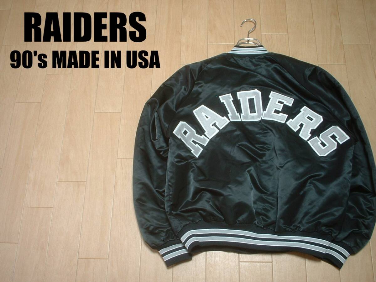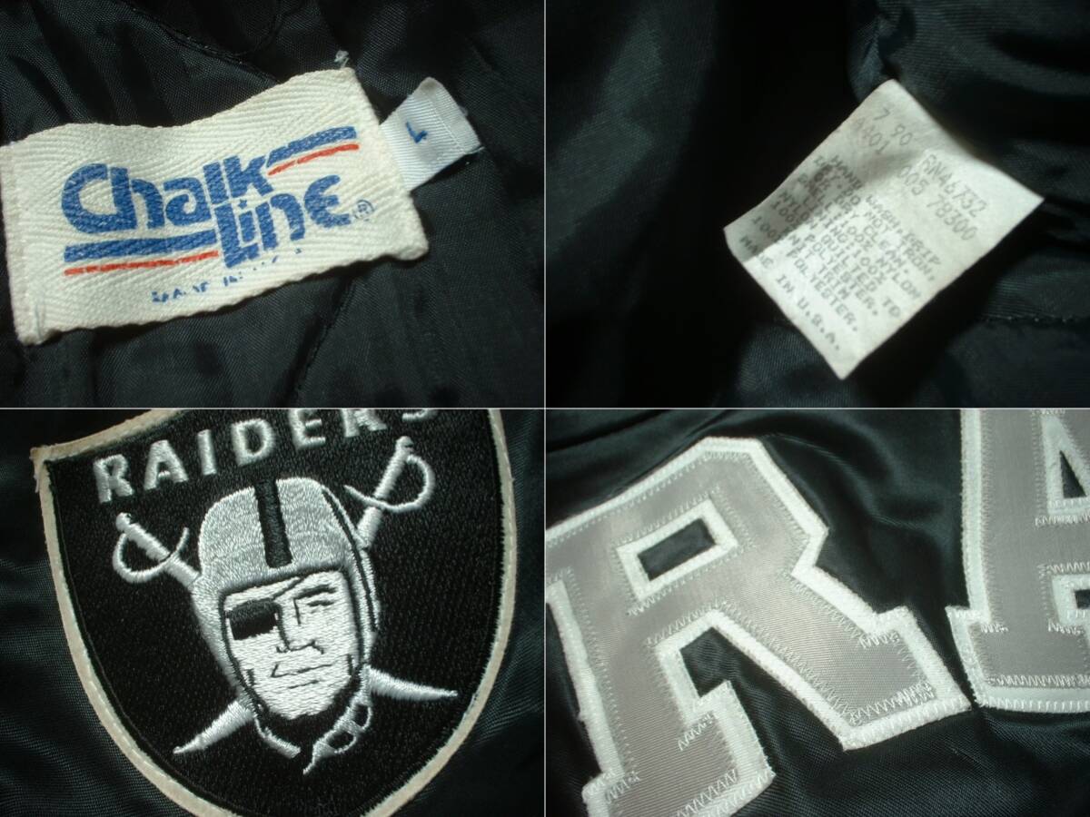 90sビンテージMADE IN USA希少RAIDERSナイロン中綿スタジャンLオークランドレイダーズ正規Chalk Line米国製アメフトNFLアワードジャケット