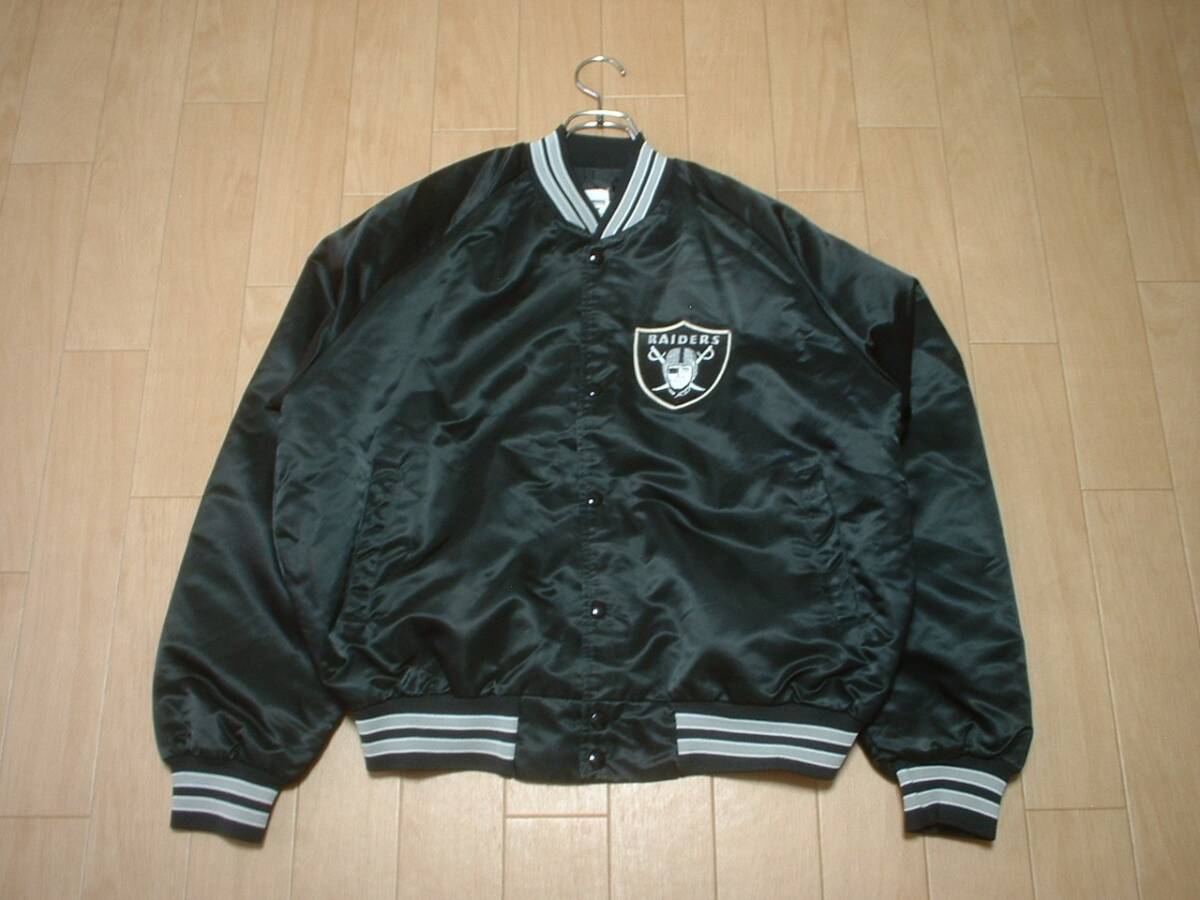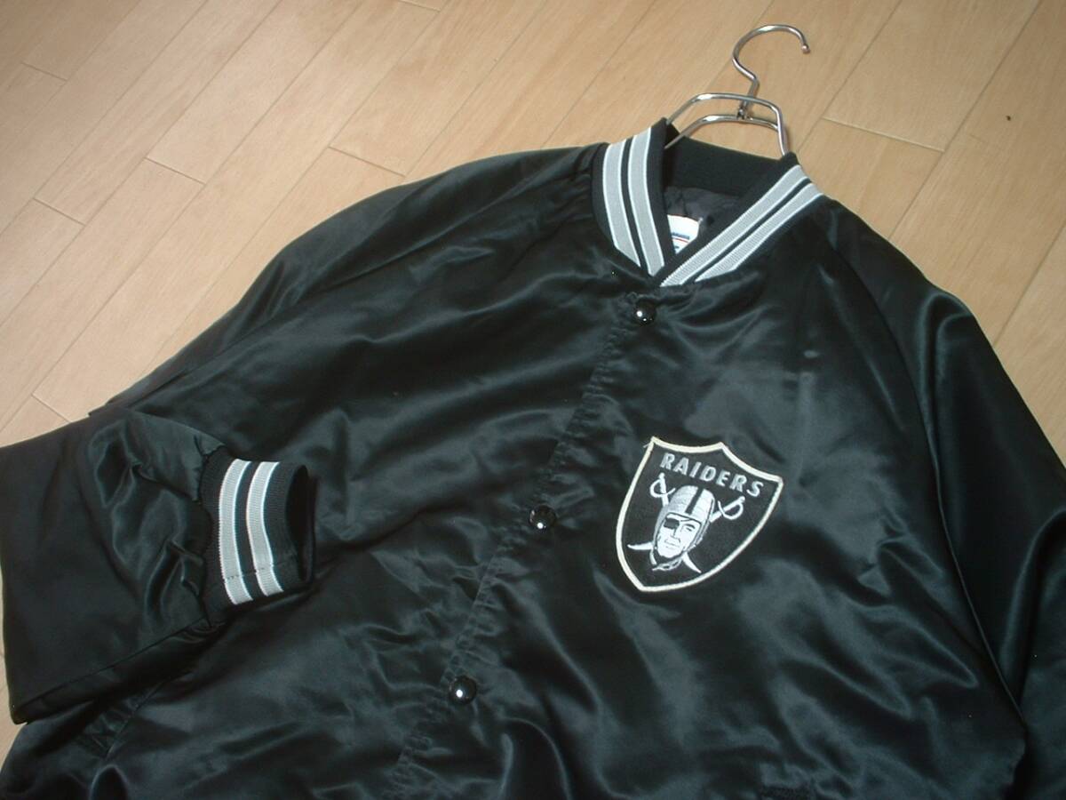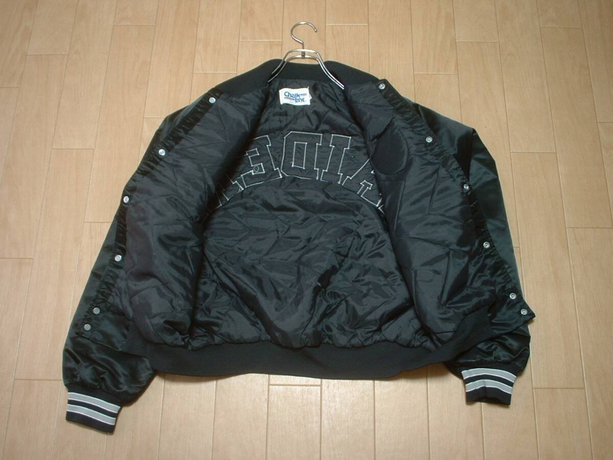 90sビンテージMADE IN USA希少RAIDERSナイロン中綿スタジャンLオークランドレイダーズ正規Chalk Line米国製アメフトNFLアワードジャケット