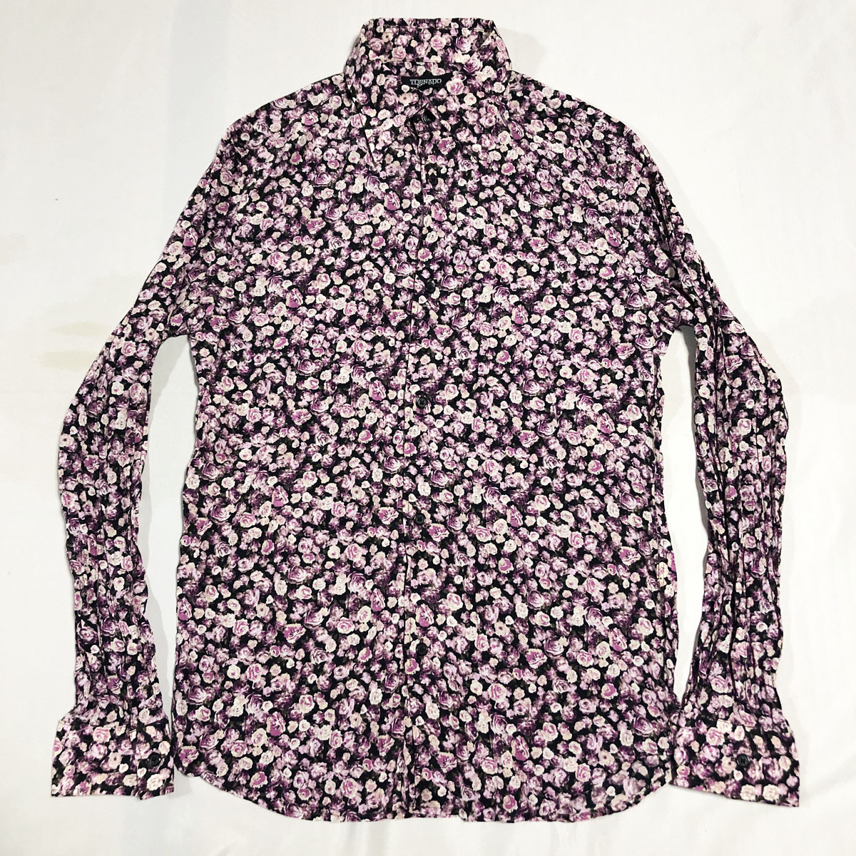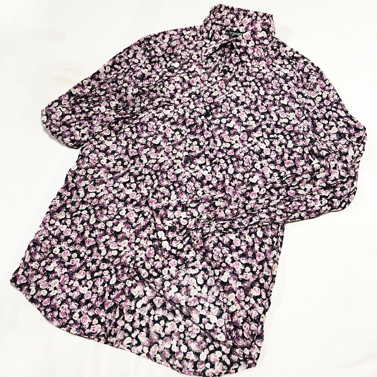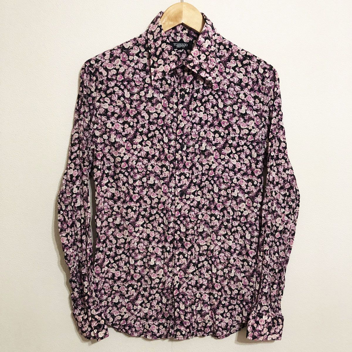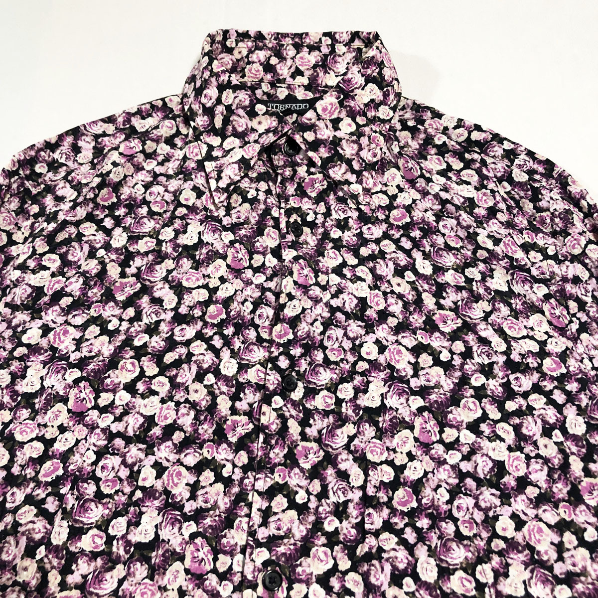 TORNADO MART トルネードマート 皺加工 ヨーロピアン 花 フラワー 総柄 ポリエステルシャツ L スピックインターナショナル 日本製
