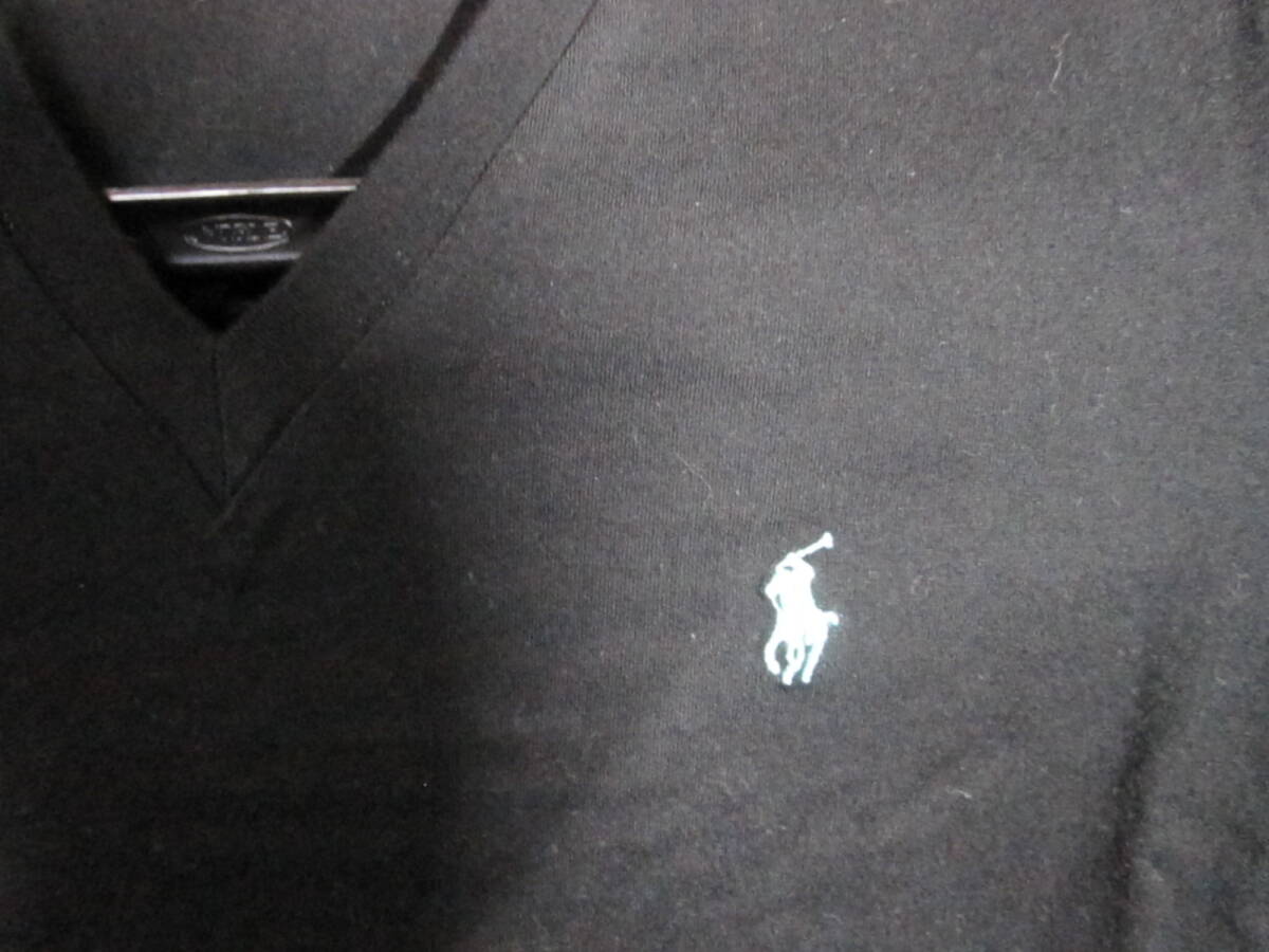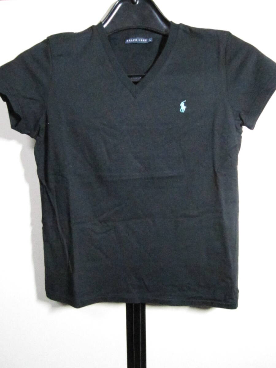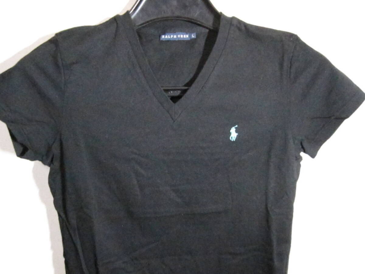 送料込み 90's 古着Tシャツ POLO RALPH LAUREN ポロ ラルフ ローレン Vネック Tシャツ サイズ レディス L 黒 ブラック