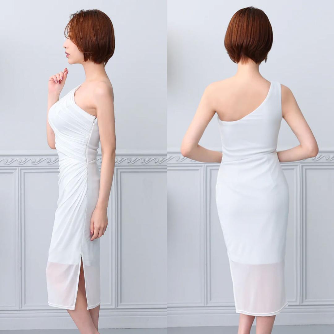 柔らかな生地で仕立てられたワンショルダーのタイトドレス。