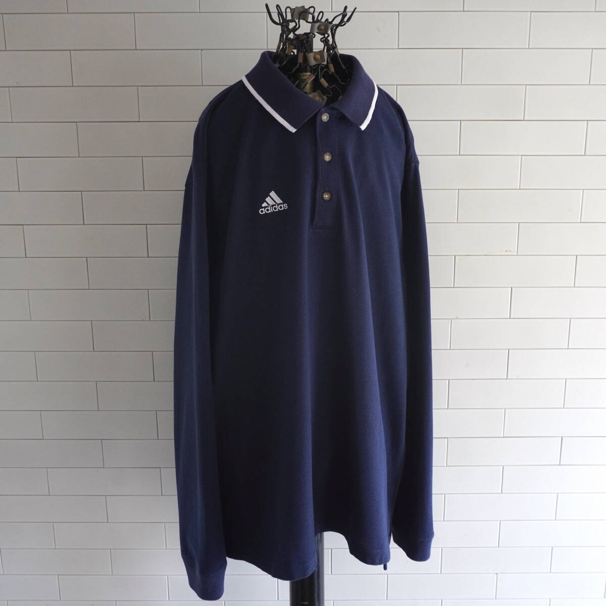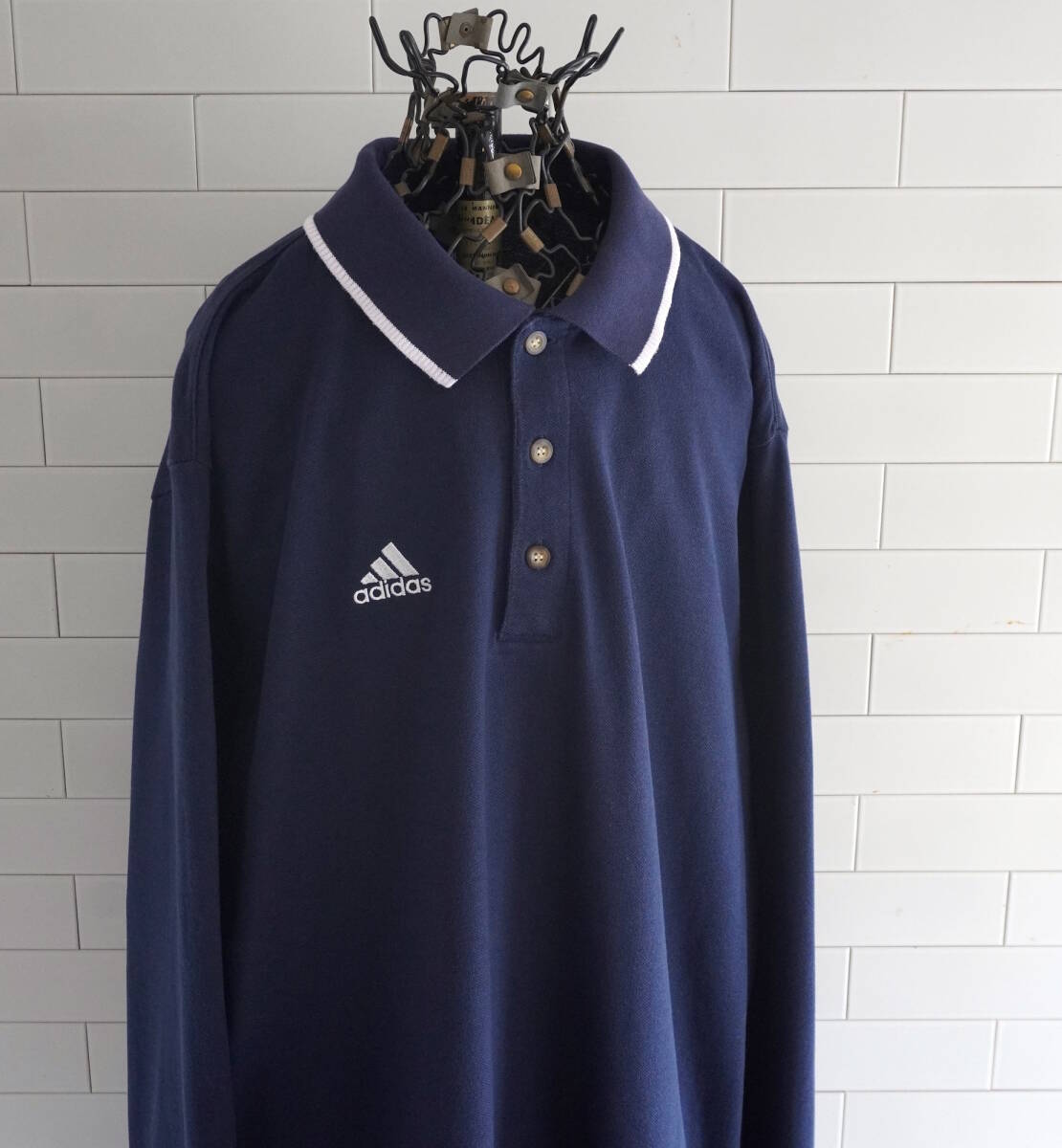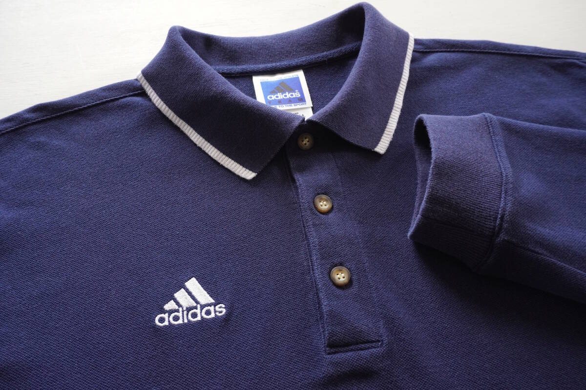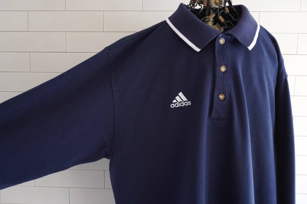 2000s ヴィンテージ adidas パフォーマンスロゴ刺繍 ロングスリーブ ポロシャツ L ネイビー 紺 アディダス / USA アメリカ Y2K 古着