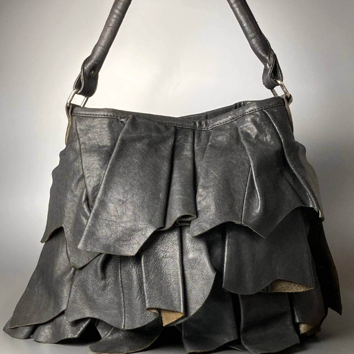 立体的なフリルがドラマティックな存在感を放つ、**LE CIEL BLEU(ルシェルブルー)**の希少レザーバッグ。