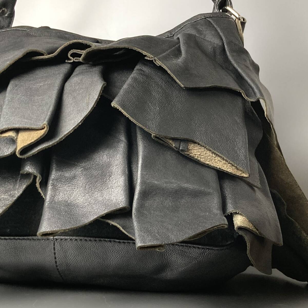希少デザイン!!◎【幻のフリルレザー】■ルシェルブルー LE CIEL BLEU■レザーハンドバッグ 肩掛け ショルダー コムデギャルソン ワイズ