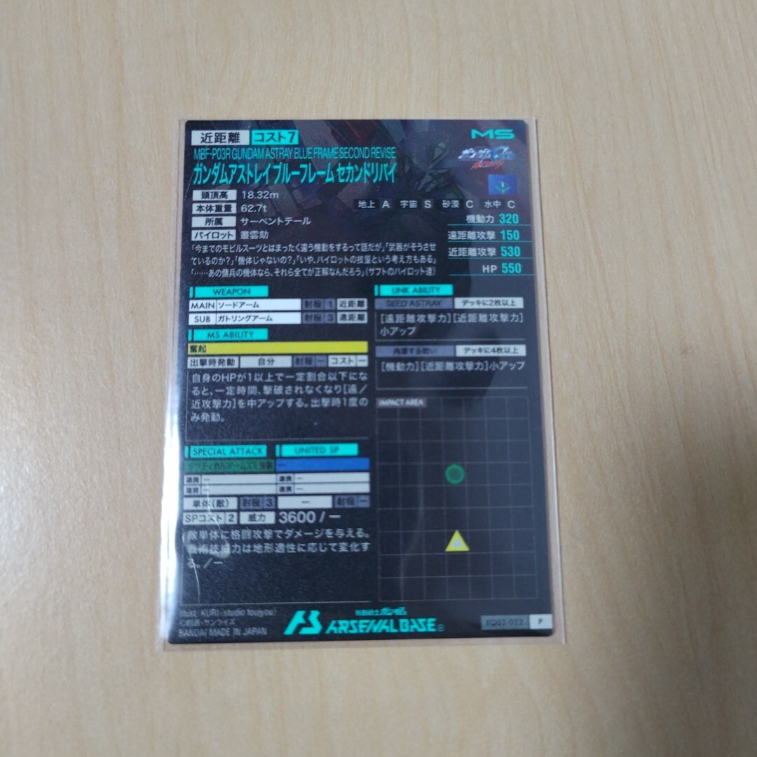 ガンダムアーセナルベース、Pレア、ガンダムアストレイブルーフレームセカンドリバイの出品となります。未使用品です。排出後、スリーブに入れて保管していますが初期キズなど気になさる方はご遠慮ください。配送料金は梱包代込みで全国一律、120円とさせていただきます。他の出品との同梱は対応いたします。ノークレム、ノーリターンにてお願いいたします。