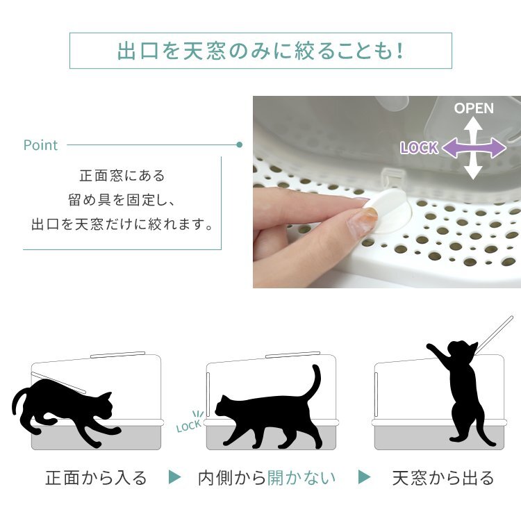 猫ちゃん用の可愛らしいトイレです。 猫ちゃんは潜ったり登ったりが大好き! 横だけでなく、上の穴からも出られる構造!! 遊び感覚で楽しみながらトイレを使えます。 ニオイが広がりにくい「扉付き」です。 さらにニオイを抑える活性炭フィルターケース付で、ニオイ対策もバッチリです!! 広々設計なので、大型の猫ちゃんでも快適にお使いいただけます! また、天板にも扉が付いており、出口を天窓のみに絞れば猫砂の飛散を防ぐことができます。 お手入簡単!上からフタを開けてお掃除できちゃう♪ お掃除には欠かせない、専用のスコップが付きで、使わない時は本体に掛けて収納可能☆ 【商品仕様】 カラー:グレー、ピンク サイズ(約):W45×H41×D51cm 重量(約):約1.8kg ※落札後、オーダーフォーム欄よりご希望のカラーをお知らせください。 未記入の場合・在庫切れの場合、ランダムに発送させていただくことがございます。 【商品内容】 トイレ本体 スコップ ヘラ 活性炭フィルター 取扱説明書 |