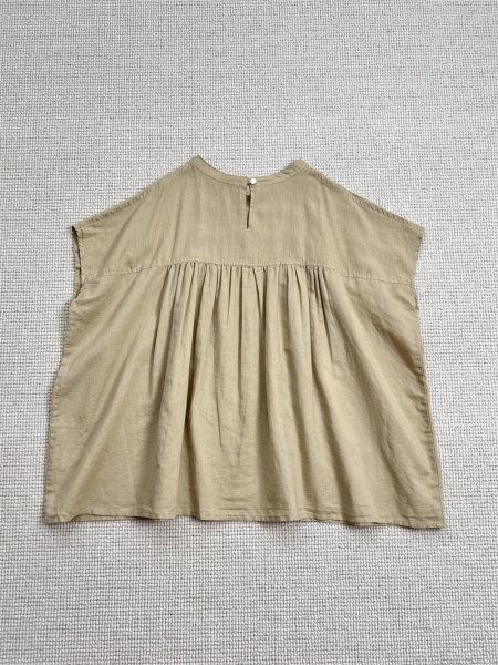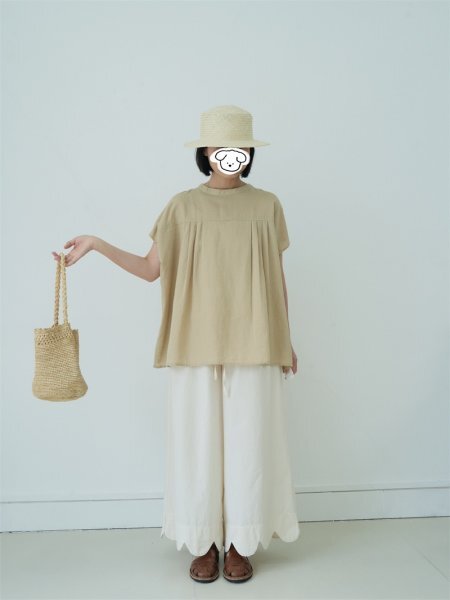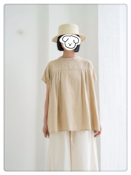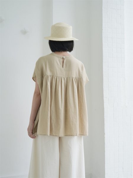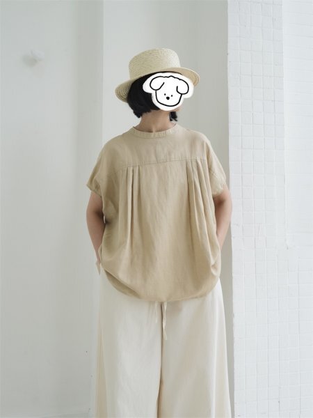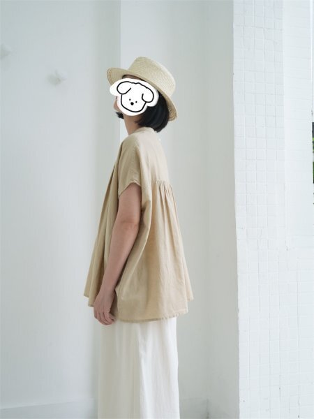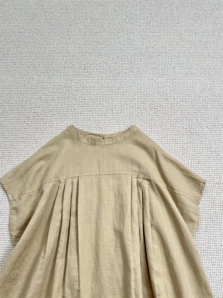 ps 0706 ヒダ チュニック トップス ふんわり フリーサイズ 高質 麻100% ナチュラル 通気性肌触り抜群 ベージュ