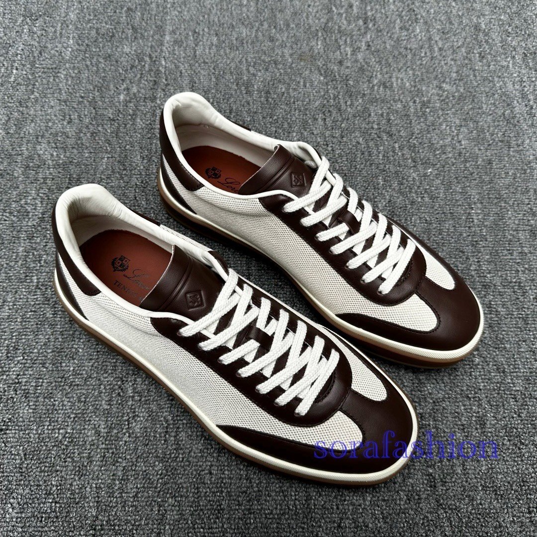 Loro Piana ロロピアーナ メンズスニーカー ウォーキングシューズ コーヒー EU39サイズ 本革 メッシュ ローカット スポーツ 紳士靴 通気性