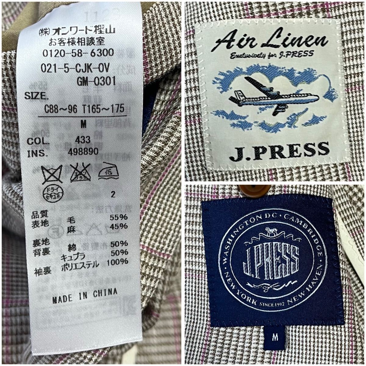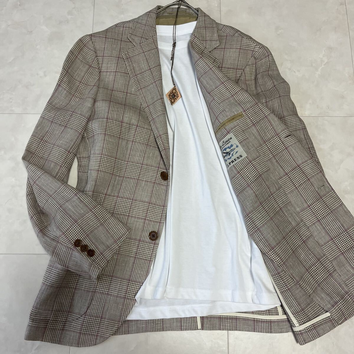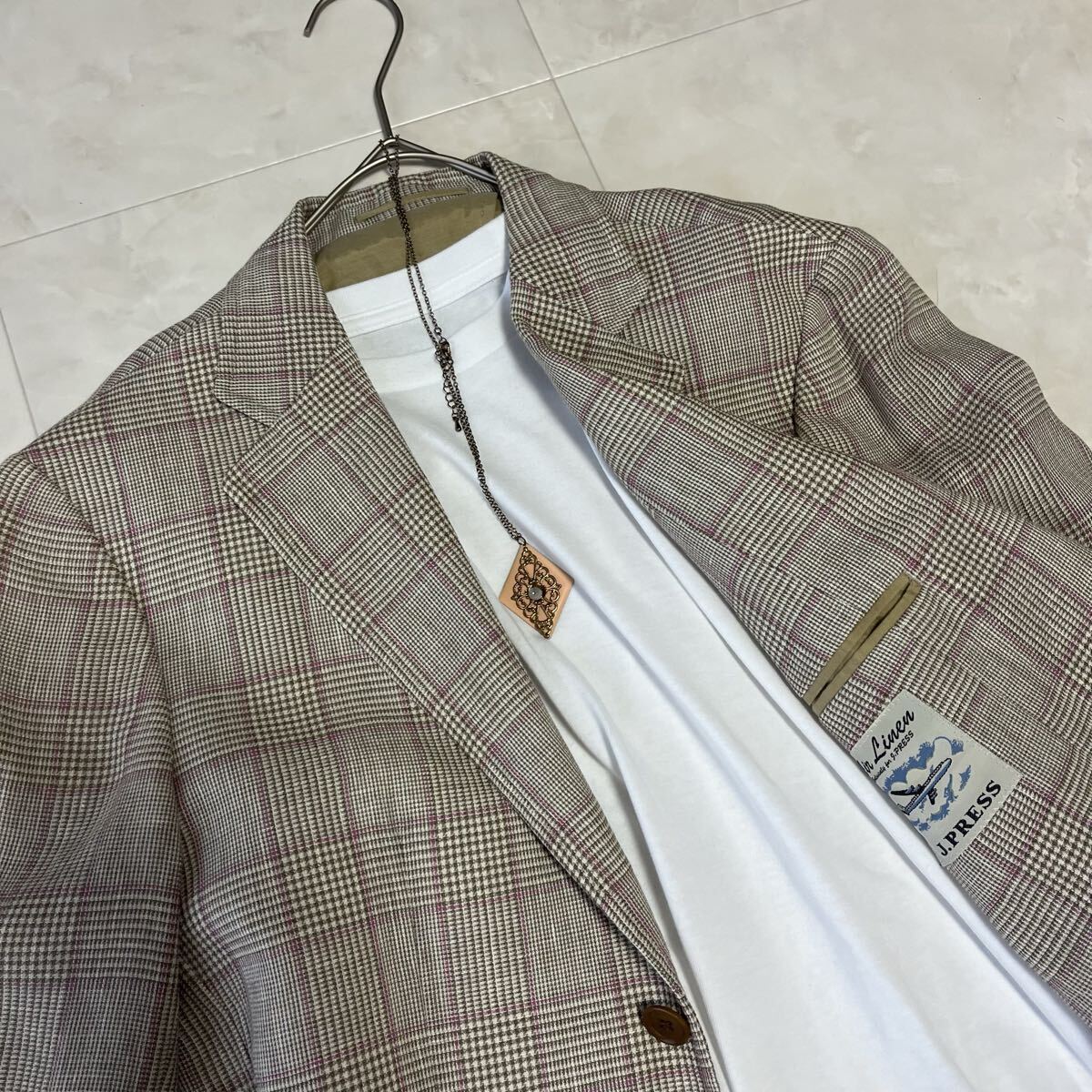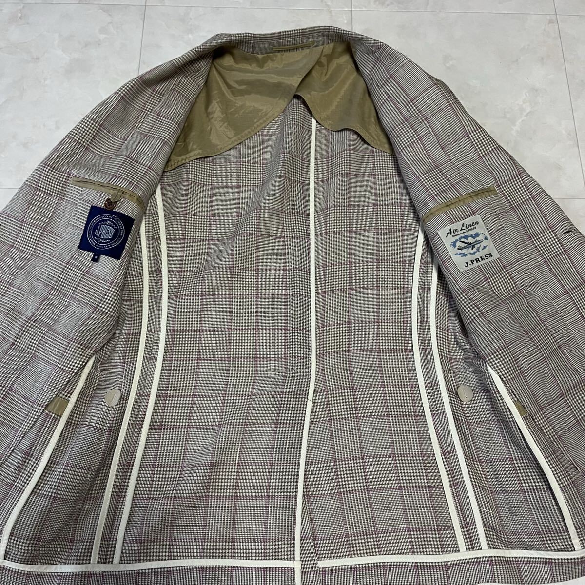 人気ブランド「J.PRESS(ジェイプレス)」のAir Linenシリーズ。上質なウール×リネン混素材を使用した軽量テーラードジャケットです。通気性が高く、春夏シーズンに最適な一着。クラシックなグレンチェック柄にさりげないピンクラインが上品な印象を与えます。