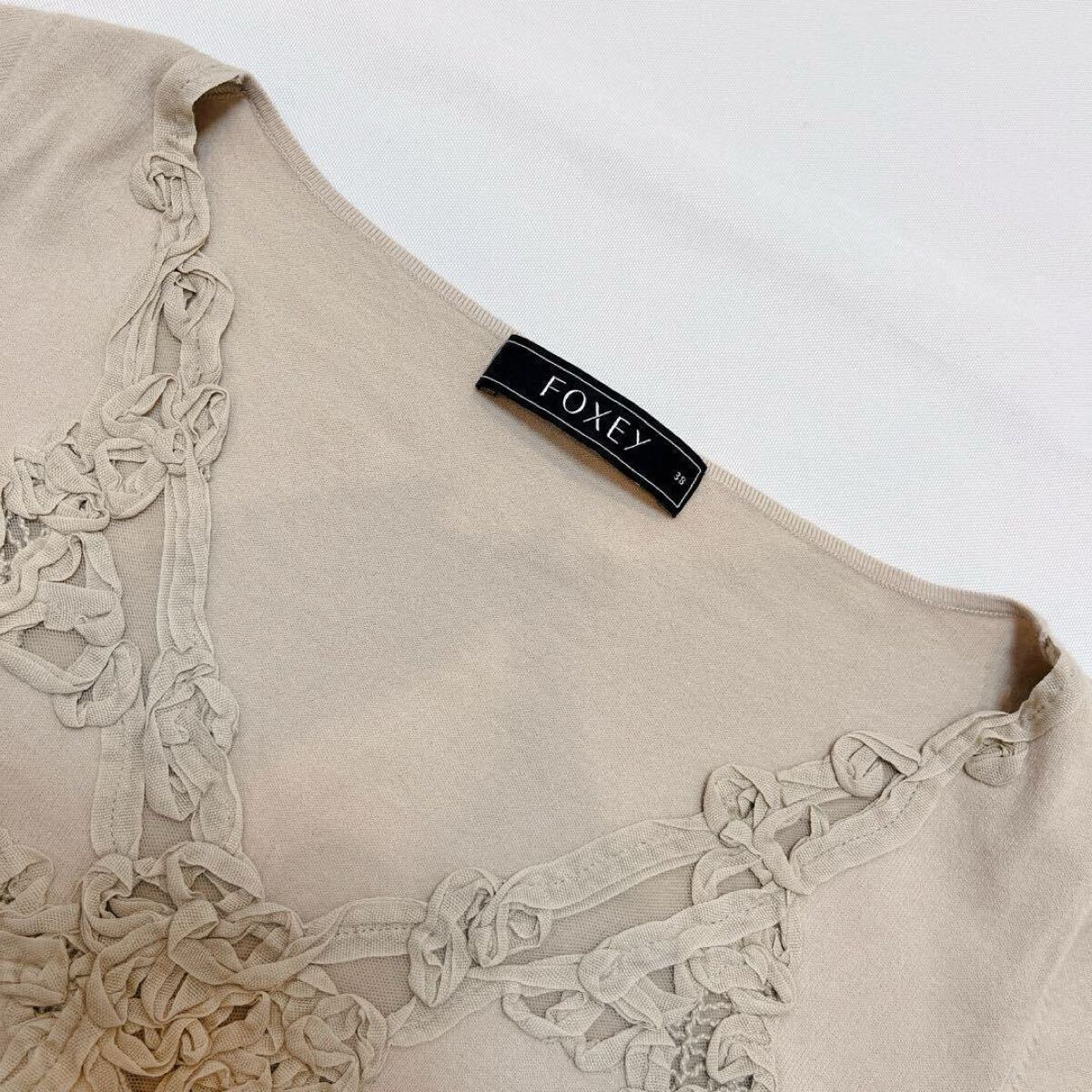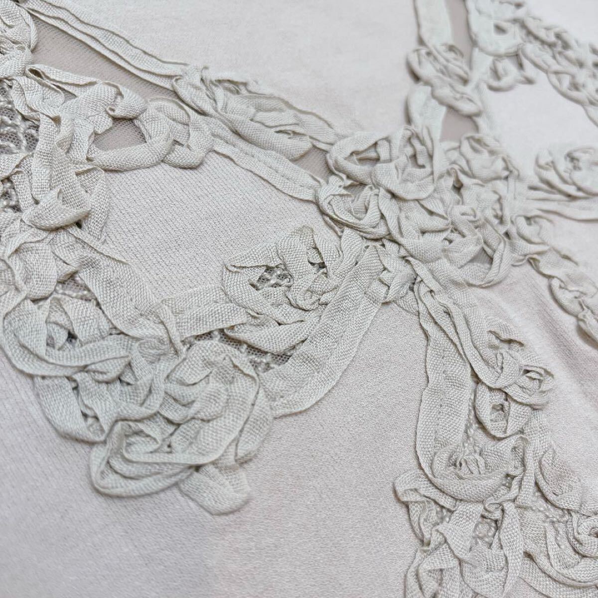 フロントに施されたリボンモチーフの立体的な装飾が印象的で、シンプルながら女性らしい上品な存在感があります。