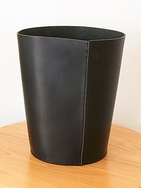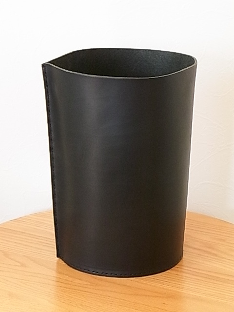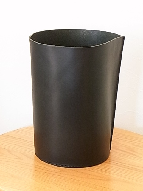 エンダースキーマ ダストボックス (ブラック)です。素材は3mmの革製で、使用していませんが、ずっとしまっておきました。サイズは、サイズは、縦30cm, 底部分直径20cm、上部直径24cm程です。