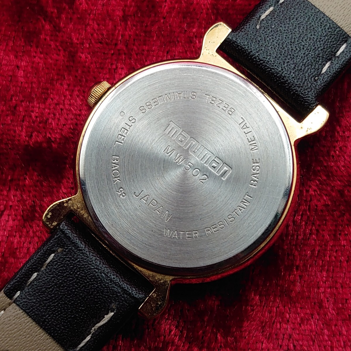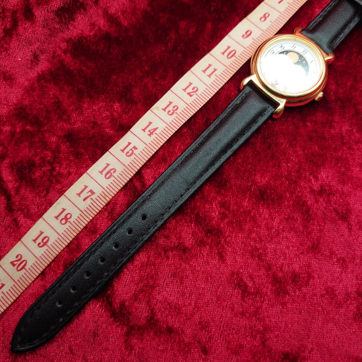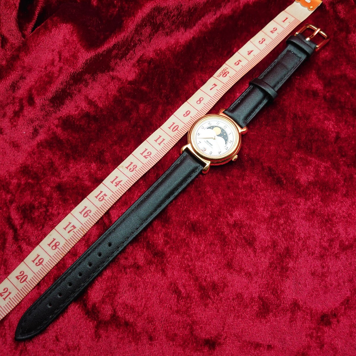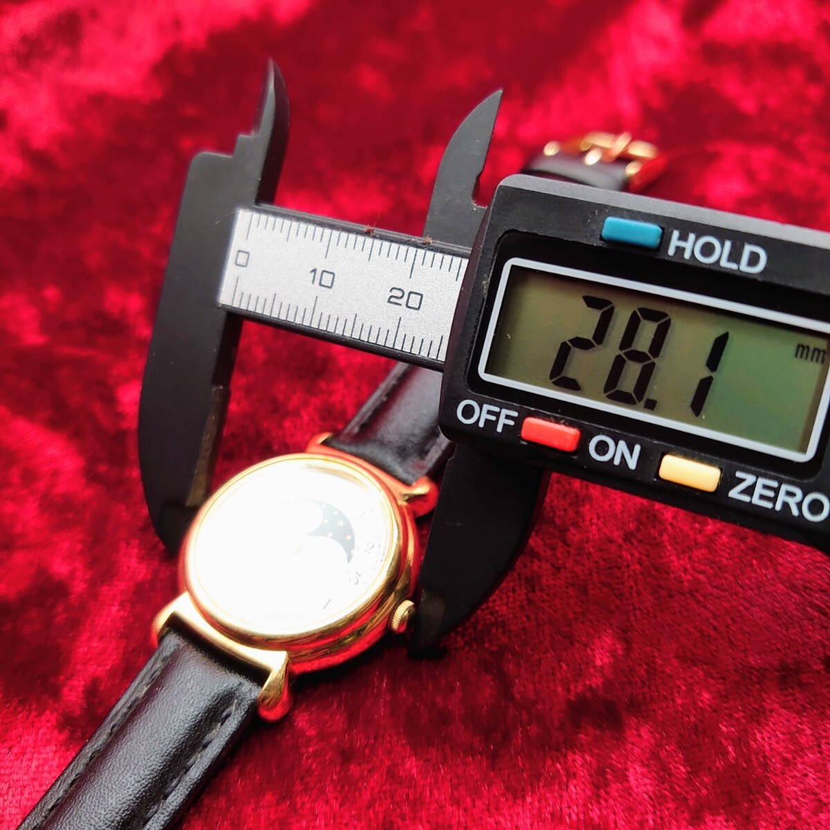 【商品】A09【ベルト新品/電池交換済】 ビンテージ ムーンフェイズ maruman アナログデイト レディース腕時計 MW502 白文字盤×ゴールド