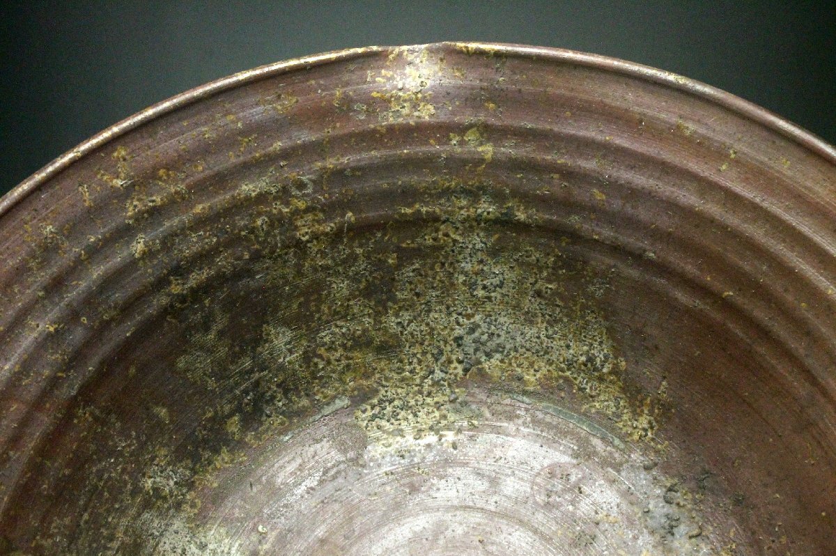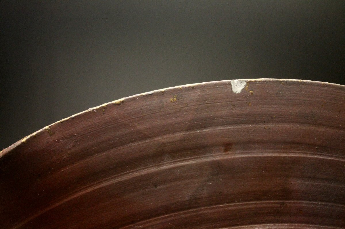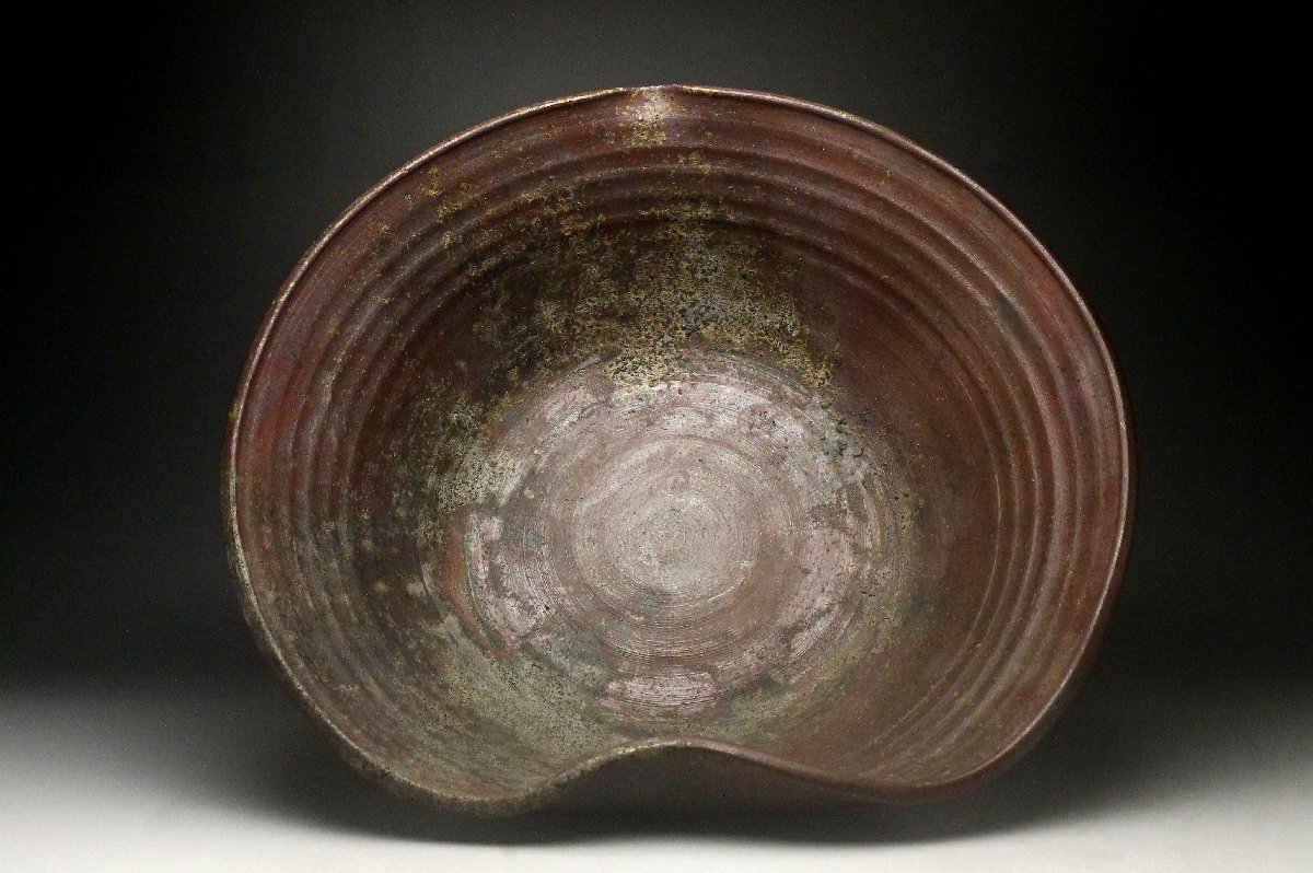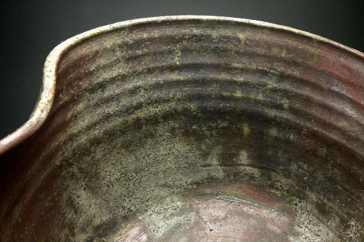 【余韻】 備前焼 忠銘 作家物 陶印在 在銘 花器 桃形 水盤 大鉢★華道具 茶道具 径:34cm 経年保管品 現状品<同梱可>