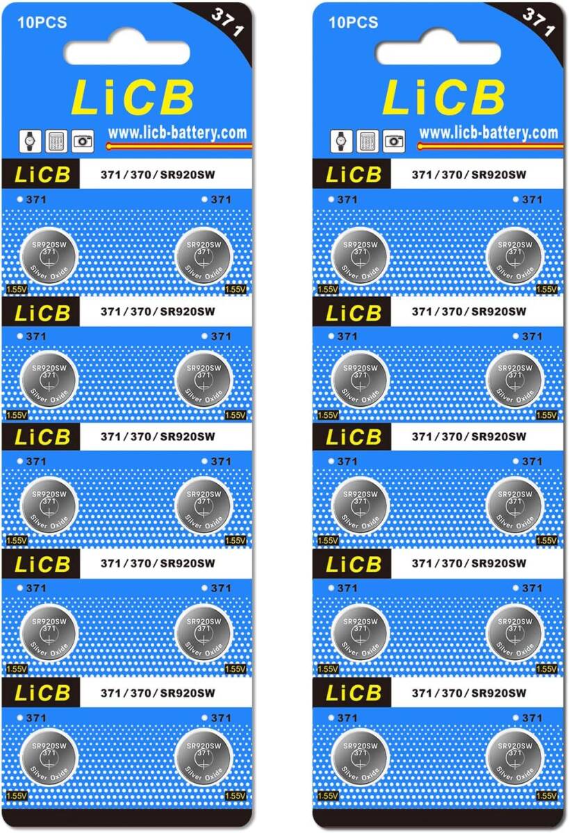 LiCB 20個 SR920SW ボタン電池 時計用【SR920sw、371 、LR920、AG6、370相当品】