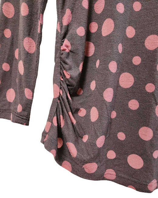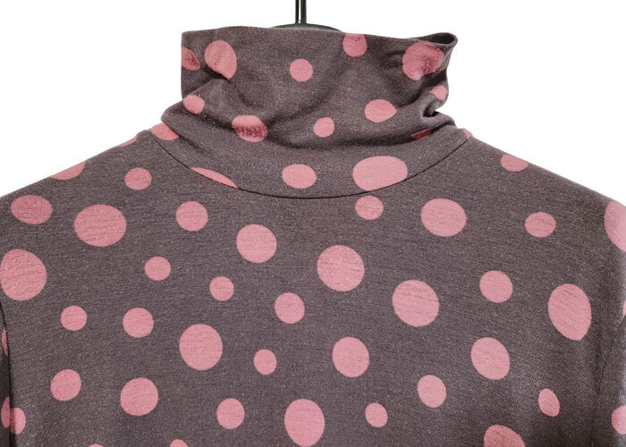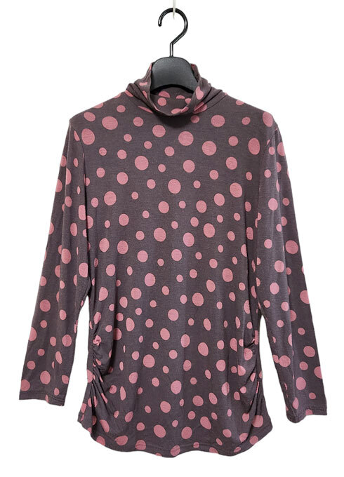 ★タートルネック 長袖 カットソー 水玉柄 薄焦茶に渋ピンク 11