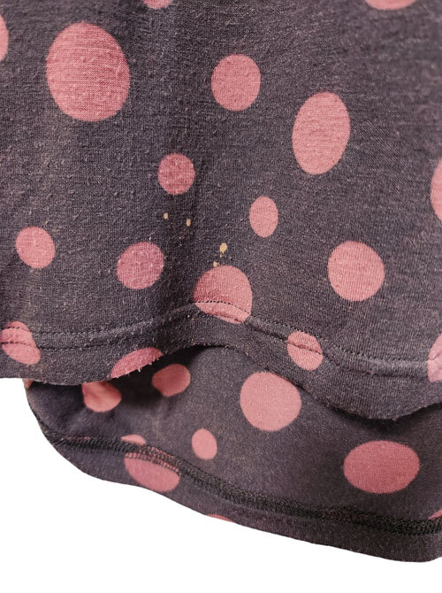 後ろ身頃の裾付近に小さな点々ですが、色抜けがあります。