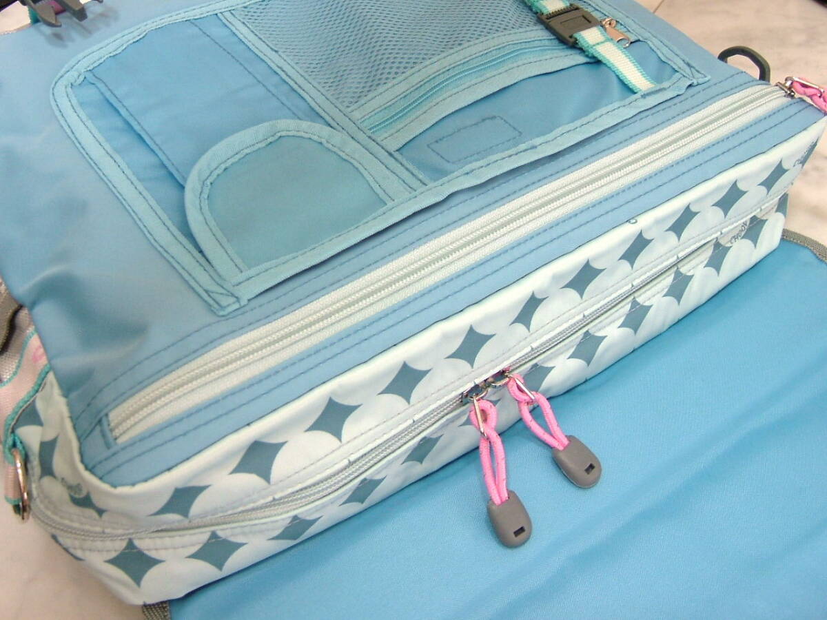 ■ファスナー付のメイン開口部の前面にはファスナー付の大型ポケット1 マジックテープ付ポケット1 ファスナー付メッシュポケット1 マジックテープ付小物入ポケット1 ワンタッチで着脱可能なキーホルダー付