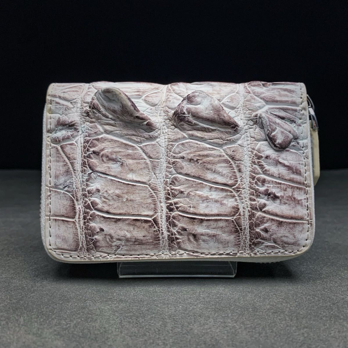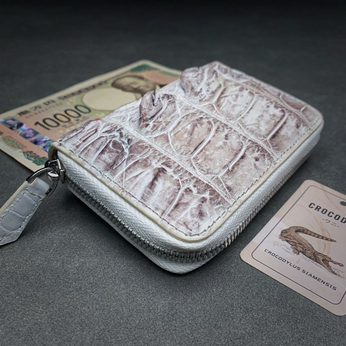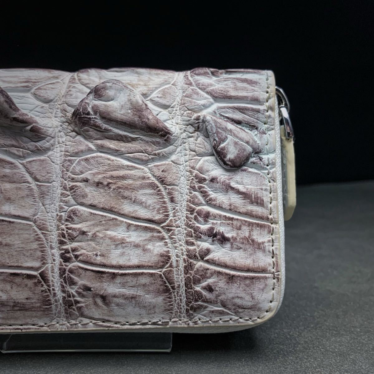 クロコダイルと呼ばれている品種のワニ革は人気が高く、独特の模様と凹凸が魅力で、高級ブランド品を中心にクロコダイルが多く使われています。今回はワニ革の代表格である<シャムクロコダイル>の腹革のラウンドファスナー財布を出品します。