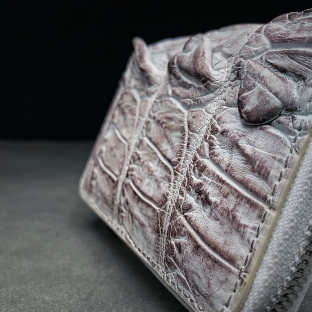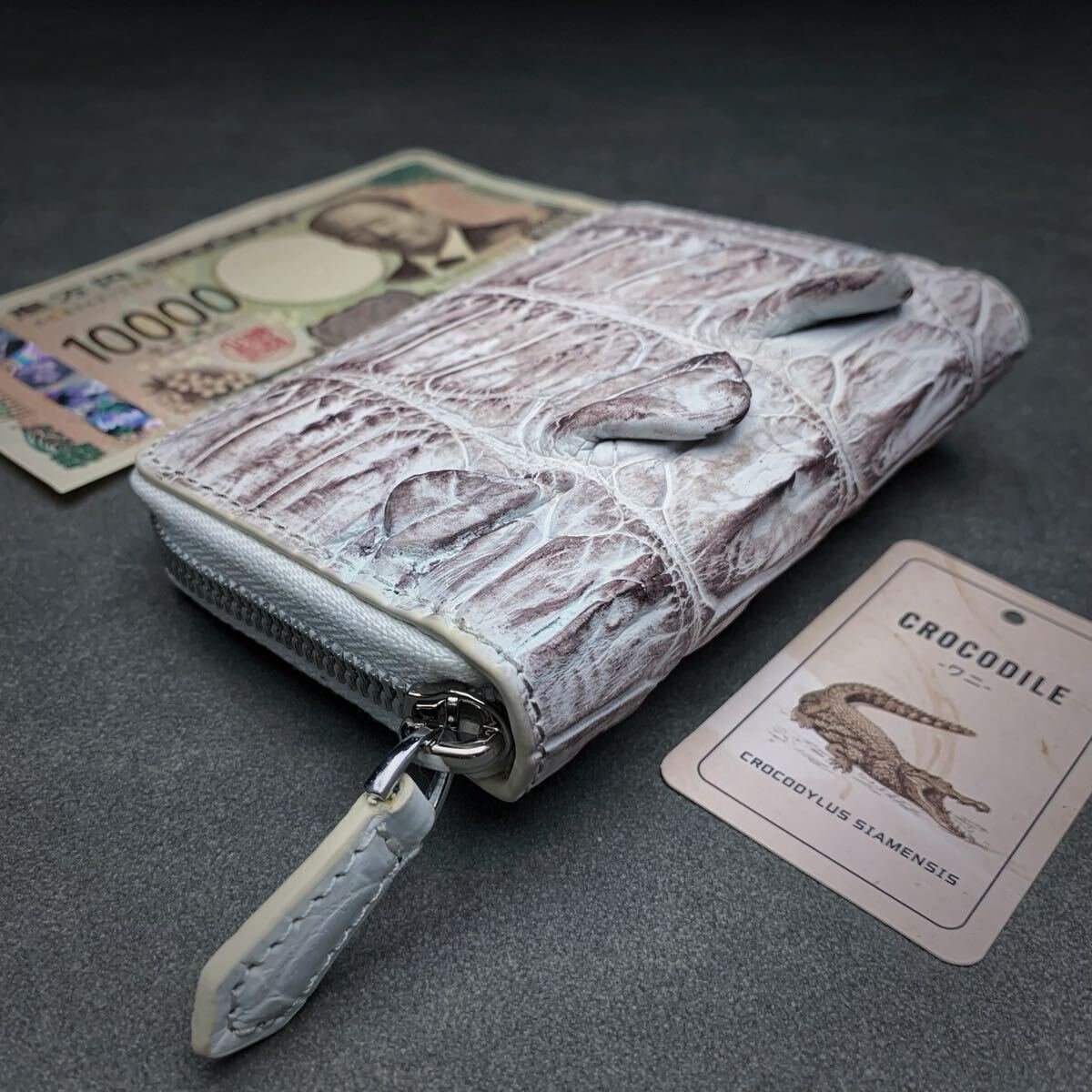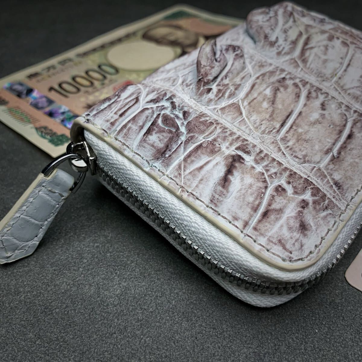 クロコダイルと呼ばれている品種のワニ革は人気が高く、独特の模様と凹凸が魅力で、高級ブランド品を中心にクロコダイルが多く使われています。今回はワニ革の代表格である<シャムクロコダイル>の腹革のラウンドファスナー財布を出品します。
