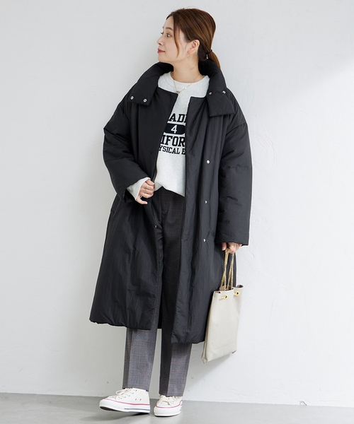 キーワード:コート アウター レディース ナイロン ボタン ロング丈 無地 秋 冬