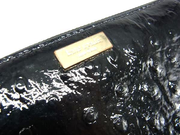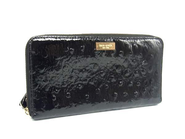 ■美品■ kate spade ケイトスペード パテントレザー ラウンドファスナー 長財布 ウォレット 札入れ 小銭入れ ブラック系 DJ6634