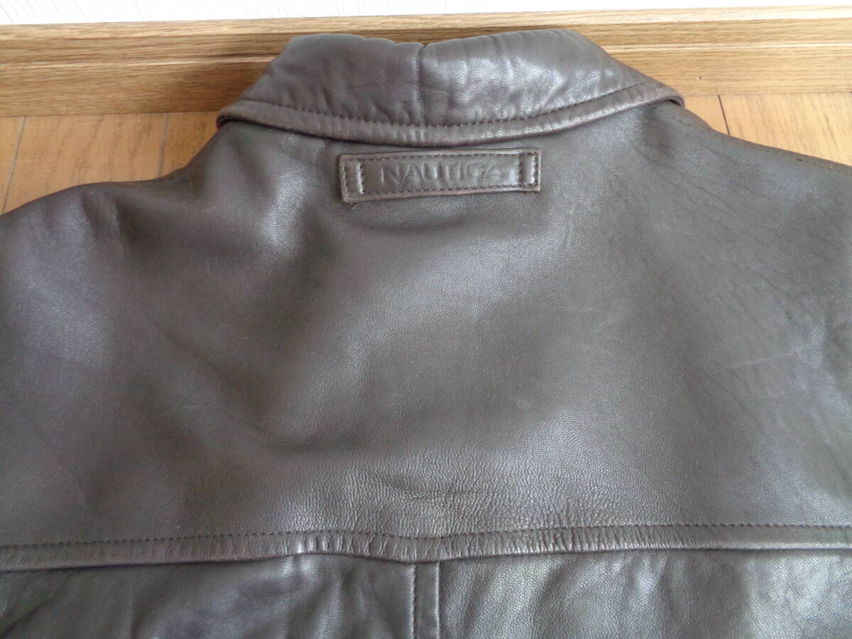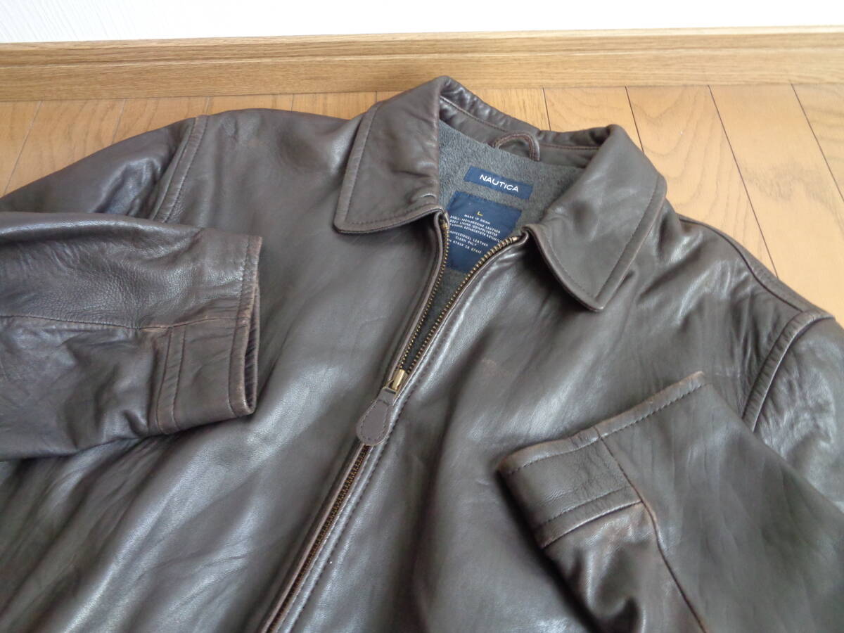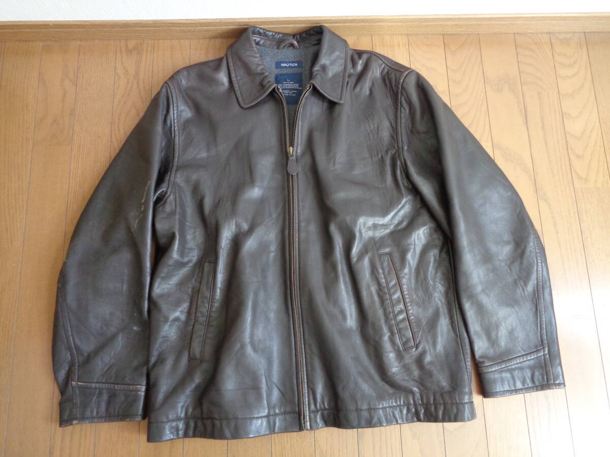 千円スタート 売切り ヴィンテージ 90s NAUTICA ノーティカ カウハイド レザー ジャケット 茶 ブラウン 高級本革 ☆ GAP L.L.Bean