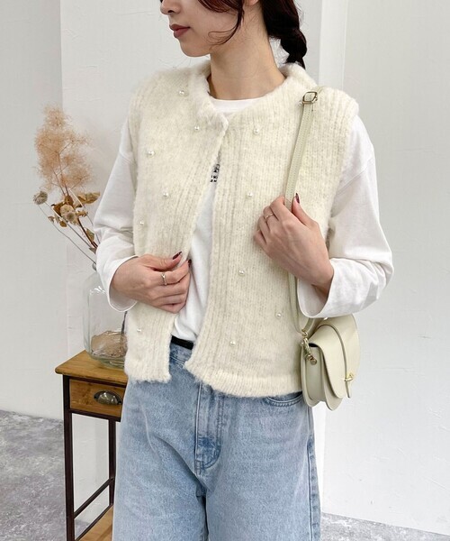 「fredy emue」 ニットベスト 38 オフホワイト レディース