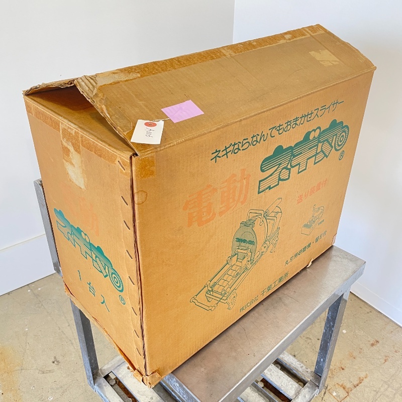| 特記事項 | ・処理能力:3kg/10分(厚み1.0mmの場合) ・投入量の目安:白ネギ2本~3本/青ネギ1束/ニラ1束 ・厚み調整:1.0mm 2.0mm 3.0mm の3段階 ・付属品:替刃(丸刃)、丸刃研磨機 ・未使用品です。 ※未使用品ですが、保管によるキズ、スレ、汚れが見られる場合がございます。 |