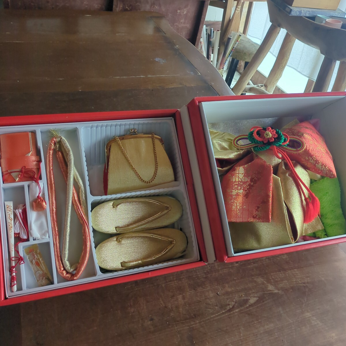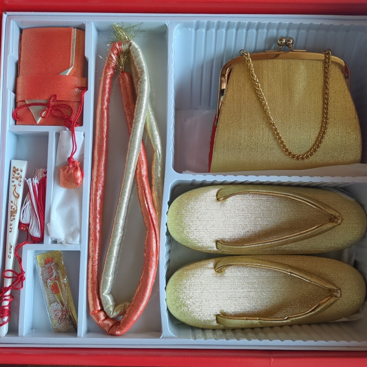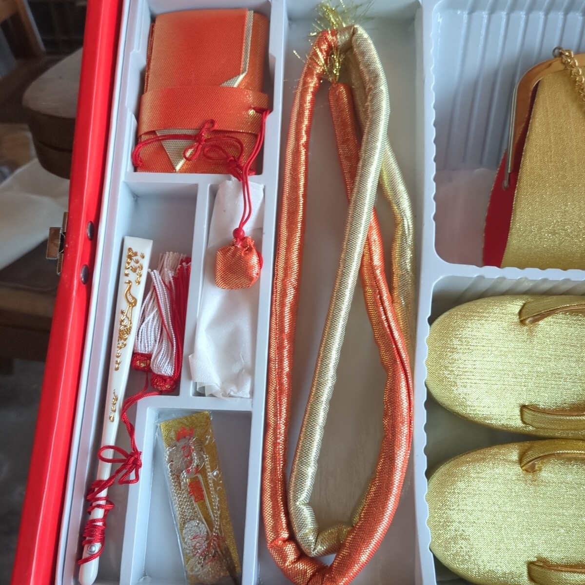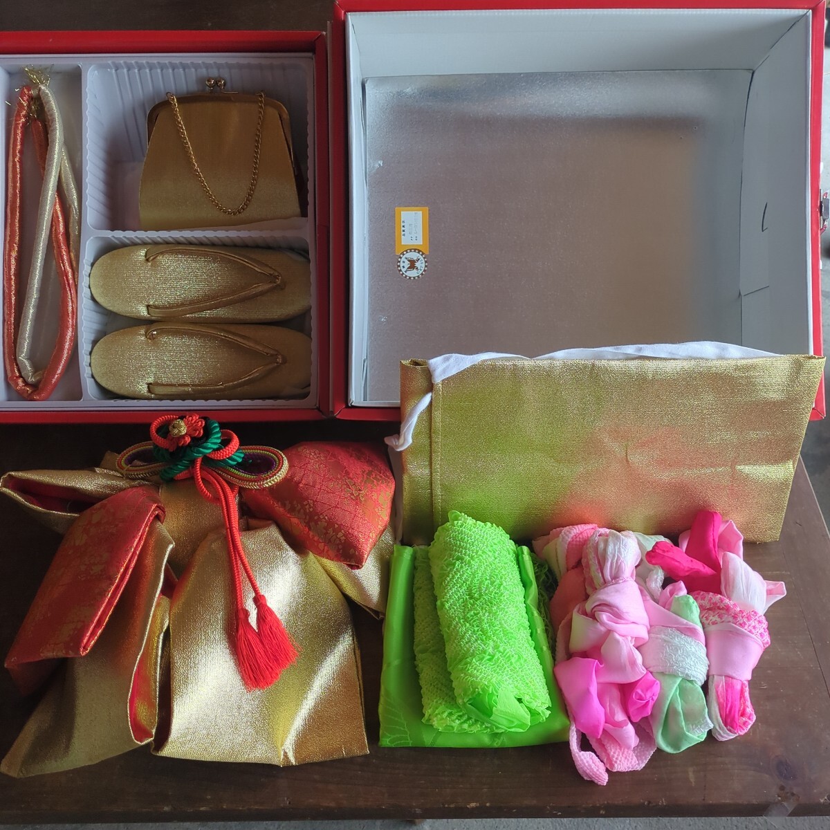 七五三 女の子セット 3歳 5歳 作り帯 和装小物 バッグ 草履 着物小物 帯締め 和装 トランク収納箱入り レトロ 当時物