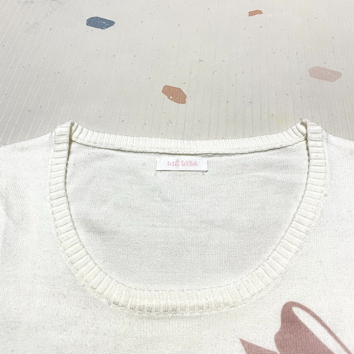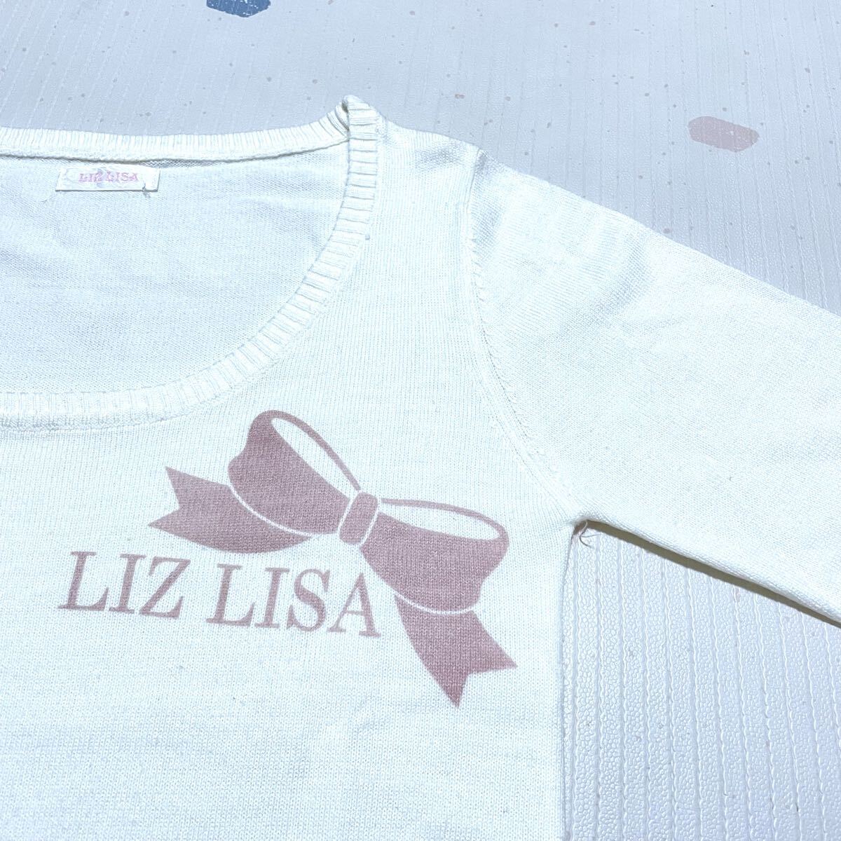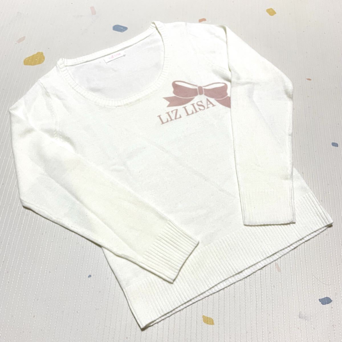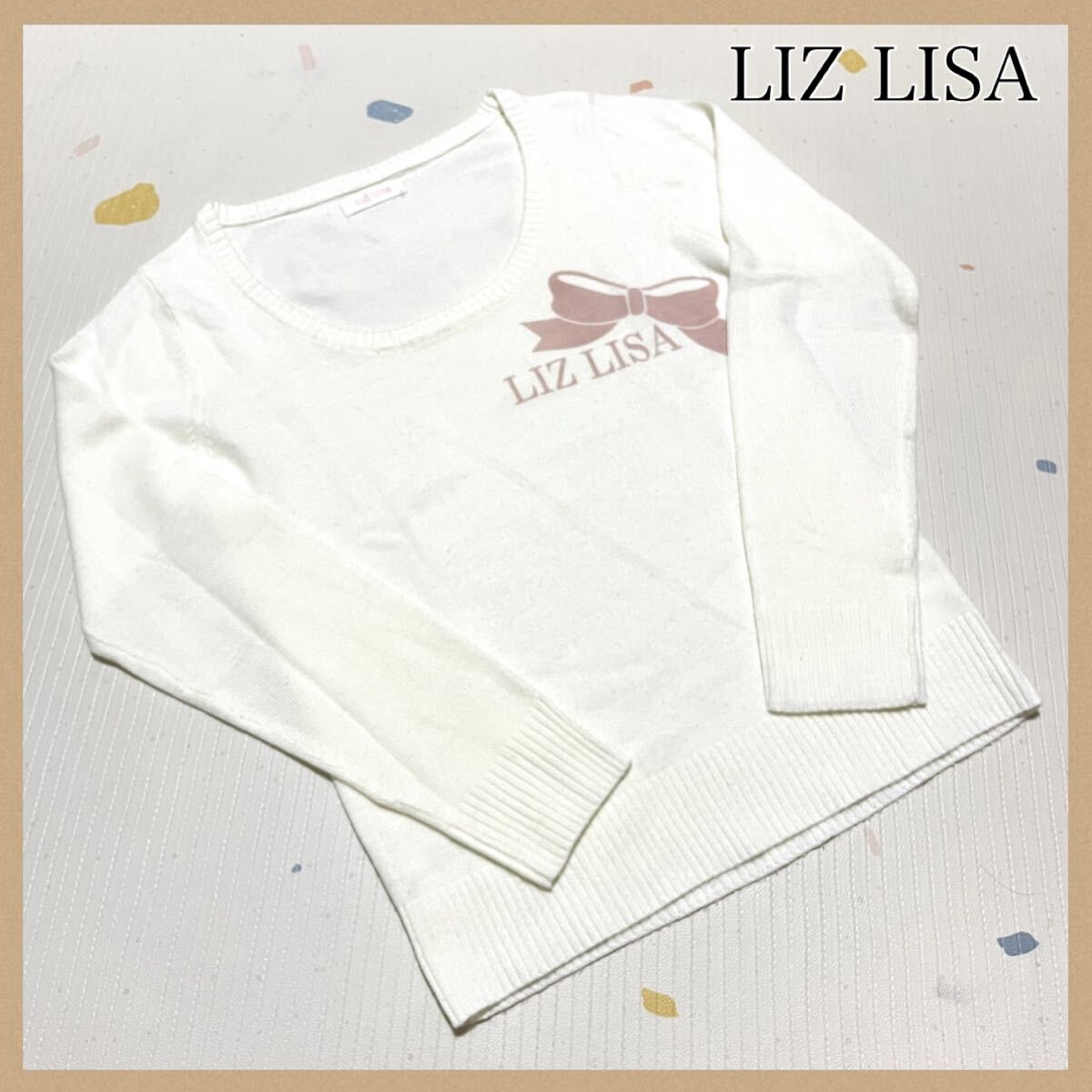 LIZ LISA(リズリサ)のガーリーな長袖ニットトップスです。フロントにロゴとリボンプリントが施され、シンプルながら可愛らしいデザイン。柔らかなアクリル素材で着心地が良く、デイリーからデートまで幅広く活躍します。目立った傷や汚れはなく、まだまだご使用いただけます。