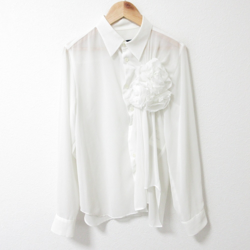 商品名:AD2000 tricot COMME des GARCONS トリココムデギャルソン コサージュ付き シアーブラウス シャツ サイズM ホワイト