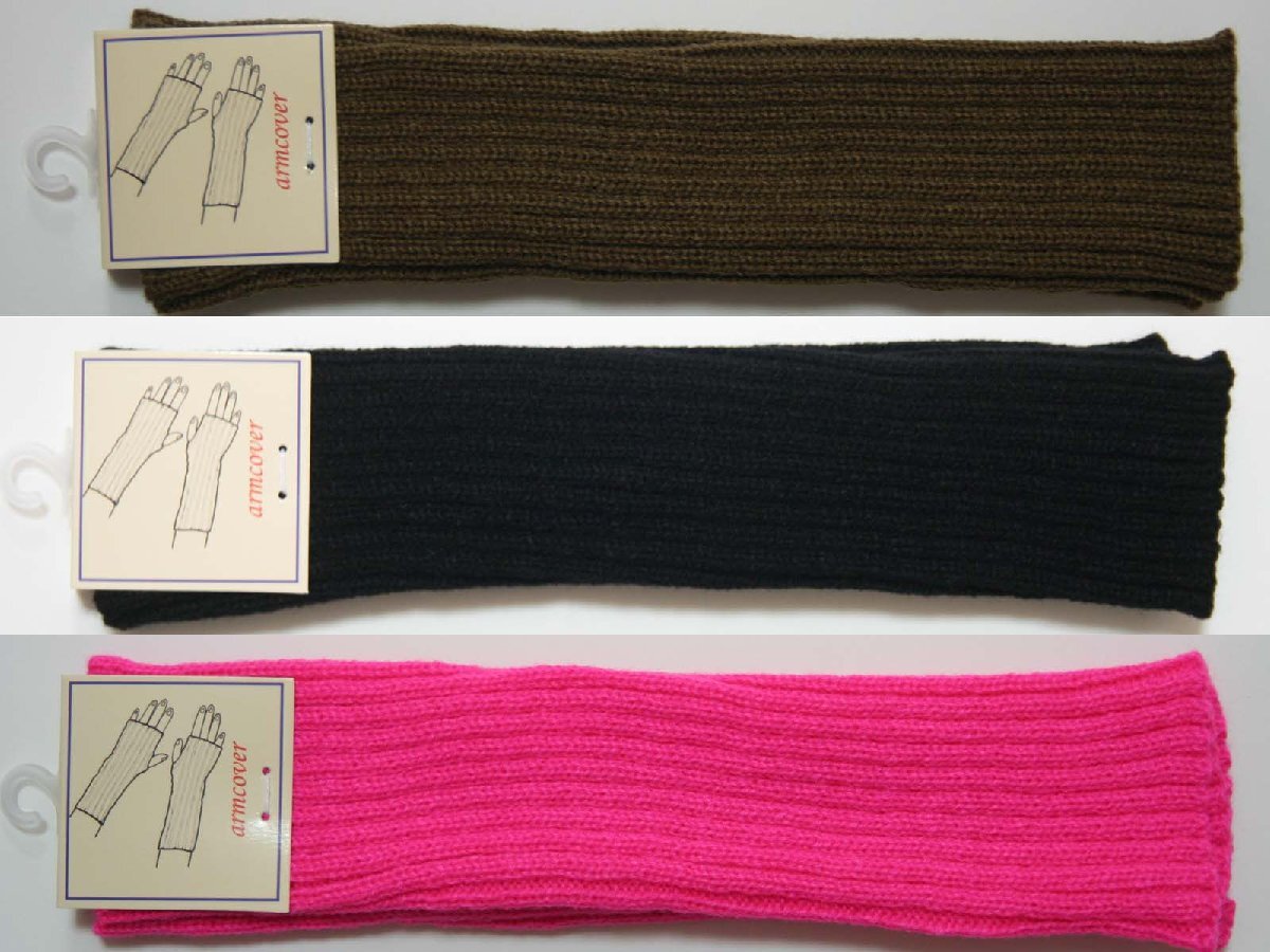 送料無料◆3色組◆アームウォーマー◆親指穴付き◆防寒◆無地◆リブ編み◆あったかアームカバー(ブラウン&ブラック&ショッキングピンク)