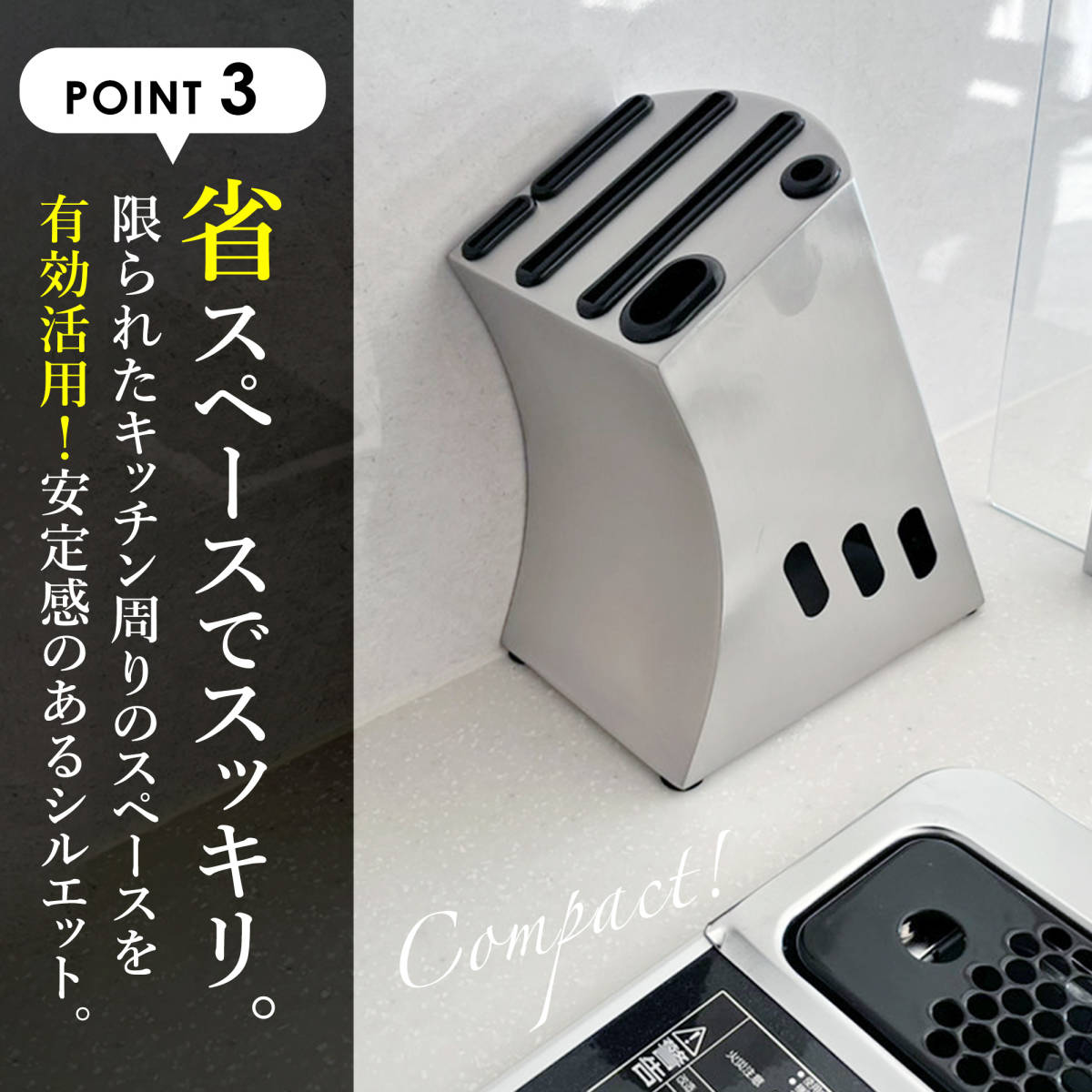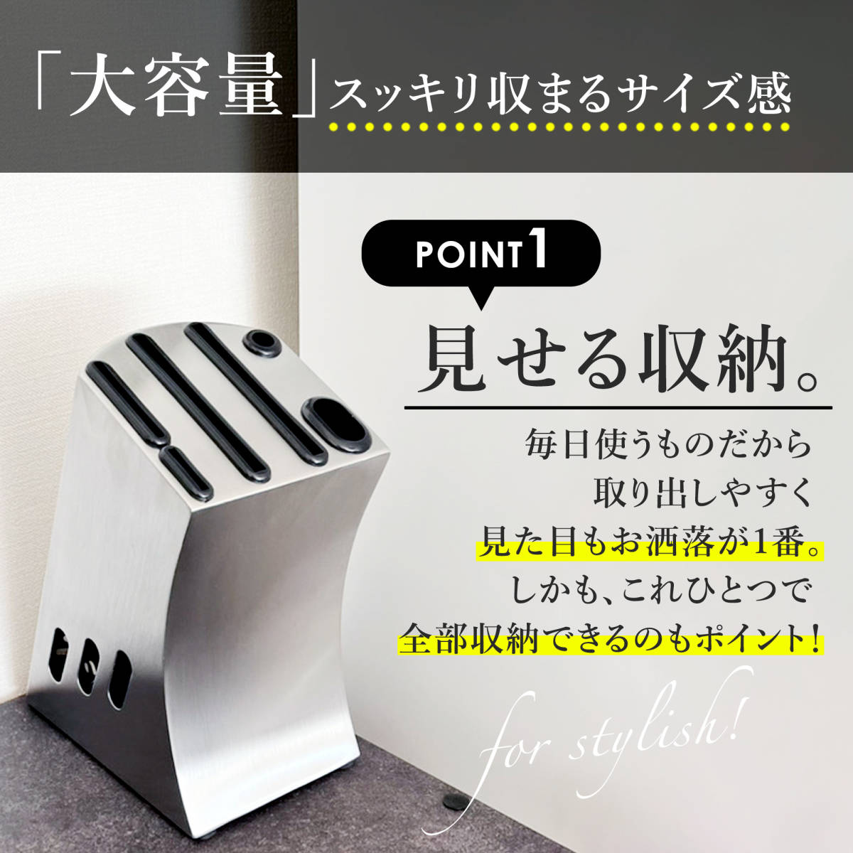 | 【毎日使う包丁。こんなお悩みありませんか?】 ・収納場所がなくて、キッチンが使いにくい ・木製の包丁スタンドは洗いにくく不衛生 ・プラスチックの包丁スタンドは耐久性が弱い ・包丁が散乱してしまい困っている 【そんなお悩みを解決します!選ぶなら実用性&確かな品質の包丁ケース】スッキリ収納できるステンレス製包丁ケース。 【Pinot1:見せる収納】毎日使うものだから取り出しやすく見た目もおしゃれが一番!ステンレス製包丁ケース一つで包丁やキッチンばさみまで全部収納しちゃいます。 【Pinot2:清潔】サビにも強い、丈夫で長持ちな高品質ステンレスを使用。まるごと水洗いもできます。 【Pinot3:コンパクト設計】省スペースでスッキリ。限られたキッチン周りのスペースを有効活用できます。 【Pinot4:水切りも簡単】底面には便利な排水溝が空いております。濡れたままの包丁を収納しても、しっかり水切りしてくれます。水が溜まらないので最近も発生しにくいです。 【Pinot5:底面に滑り止め付き】ピタっとズレにくい&倒れにくい!滑り止め付きで安心・安全。 【Pinot6:サビに強い!高品質ステンレス採用】汚れやホコリが溜まりにくいシームレスステンレス鋼を採用。 【Pinot7:たっぷり大容量】すべての包丁・調理器具がこれ一つにスッキリと収まります。 【Pinot8:最大6点収納】一般家庭で使用する包丁やキッチンばさみも収納可能。 【製品仕様】寸法:横幅10.6cm×奥行き18.8cm×高さ21cm 重量:約620g 材質:ステンレス | |||