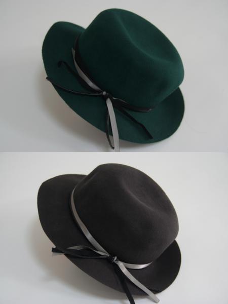 送料無料◆2色組◆百貨店仕様◆婦人帽子◆プレーンカラー◆毛100%◆ウール素材◆調節機能付き◆セミブリムハット(グリーン&グレー)