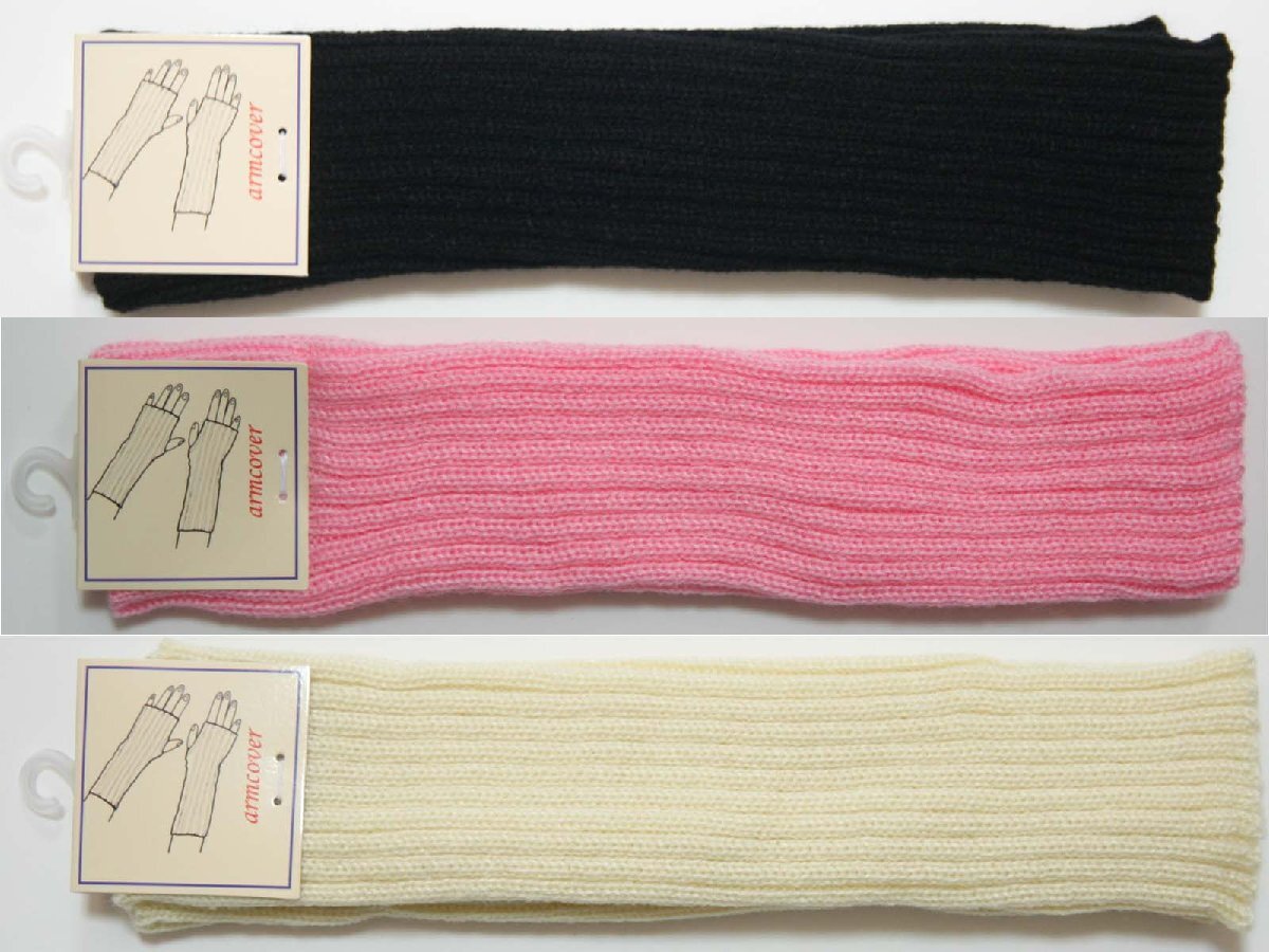 送料無料◆3色組◆アームウォーマー◆親指穴付き◆無地◆リブ編み◆あったかアームカバー(ブラック&ライトピンク&クリームベージュ)