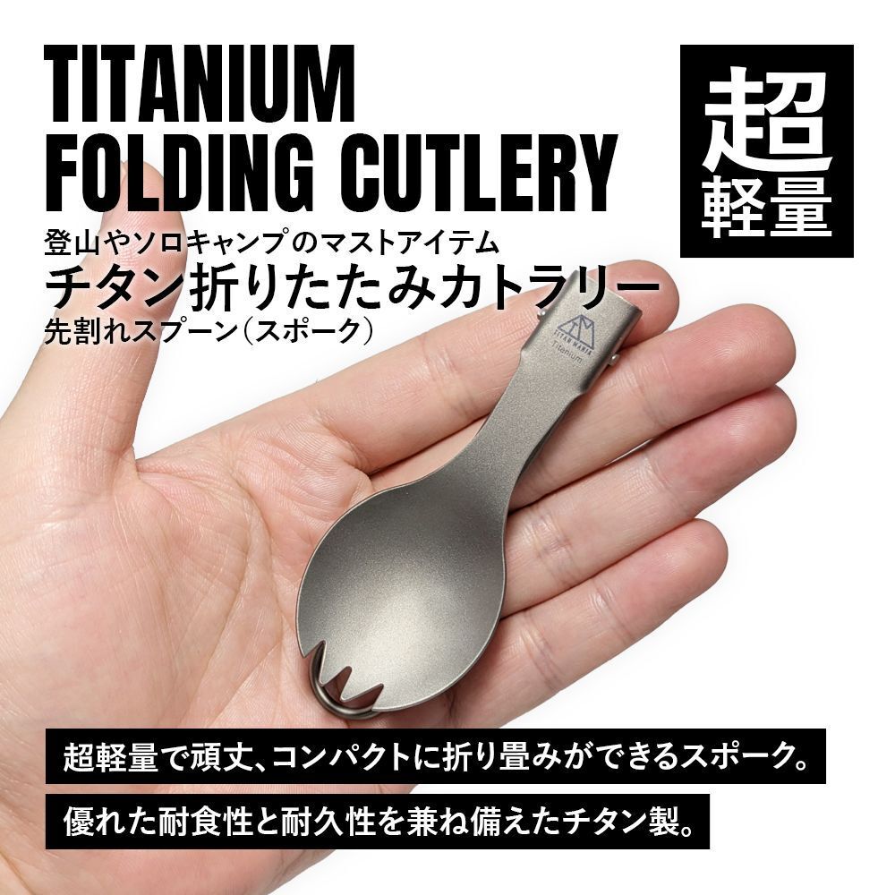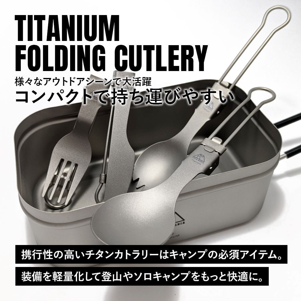 超軽量で頑丈、サビにも強い!三拍子揃ったチタン製折りたたみカトラリー。高い耐久性でアウトドアでの使用に適した食器。折り畳み式で携帯性の高いチタンギアは装備を軽量化できるので登山やソロキャンプなどウルトラライト(UL)キャンプにおすすめ。