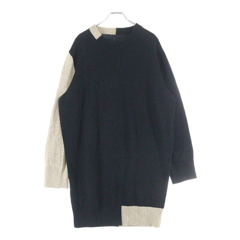 品名20AW バイカラー ウール混 ロング クルーネックニット セーター ブラック/ベージュ S52CT0550