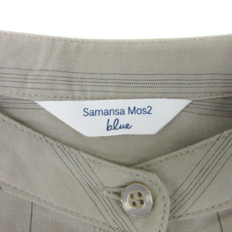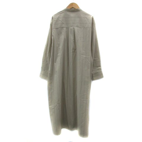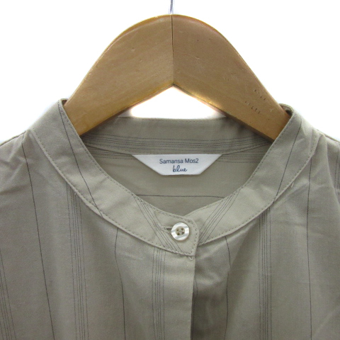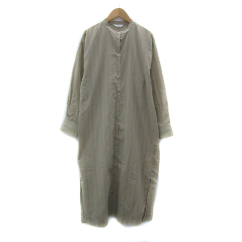 サマンサモスモス SM2 シャツワンピース ロング丈 長袖 バンドカラー ストライプ柄 オーバーサイズ F ベージュ グレー レディース