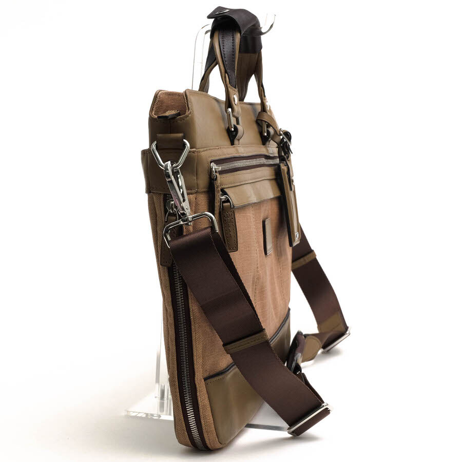 ◆ブランド名 TUMI ◆サイズ詳細 横幅 約42cm、縦幅 約32cm、マチ 約3.5cm、ショルダー長さ最大 約130cm ◆仕様 ファスナーポケット×3 携帯ポケット×2 カードポケット×3 ペンホルダー×2 ◆特徴 2WAY ショルダーバッグ ◆型番 29219SD BEDFORD ベッドフォード ジェファーソン スリム ◆素材 上質なコットン ◆素材詳細 46% コットン、46% リネン、8% PU、100% ナイロン裏地 ◆色 ブラウン 茶 ◆商品状態 中古品-良い ◆状態詳細 フロントブランドタグ欠損(画像7参照) ◆付属品 ショルダーストラップ |