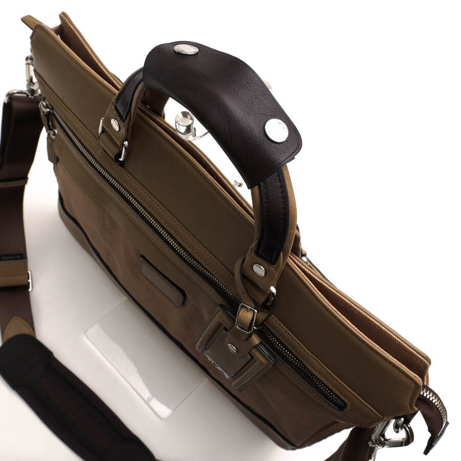 クラシカルでありながら都会的で洗練されたデザインのBedfordコレクション。拡張機能が便利な収納力に優れたブリーフケース。メインのコンパートメントはマチが広がるので、急に荷物が増えたときにも便利です。 |