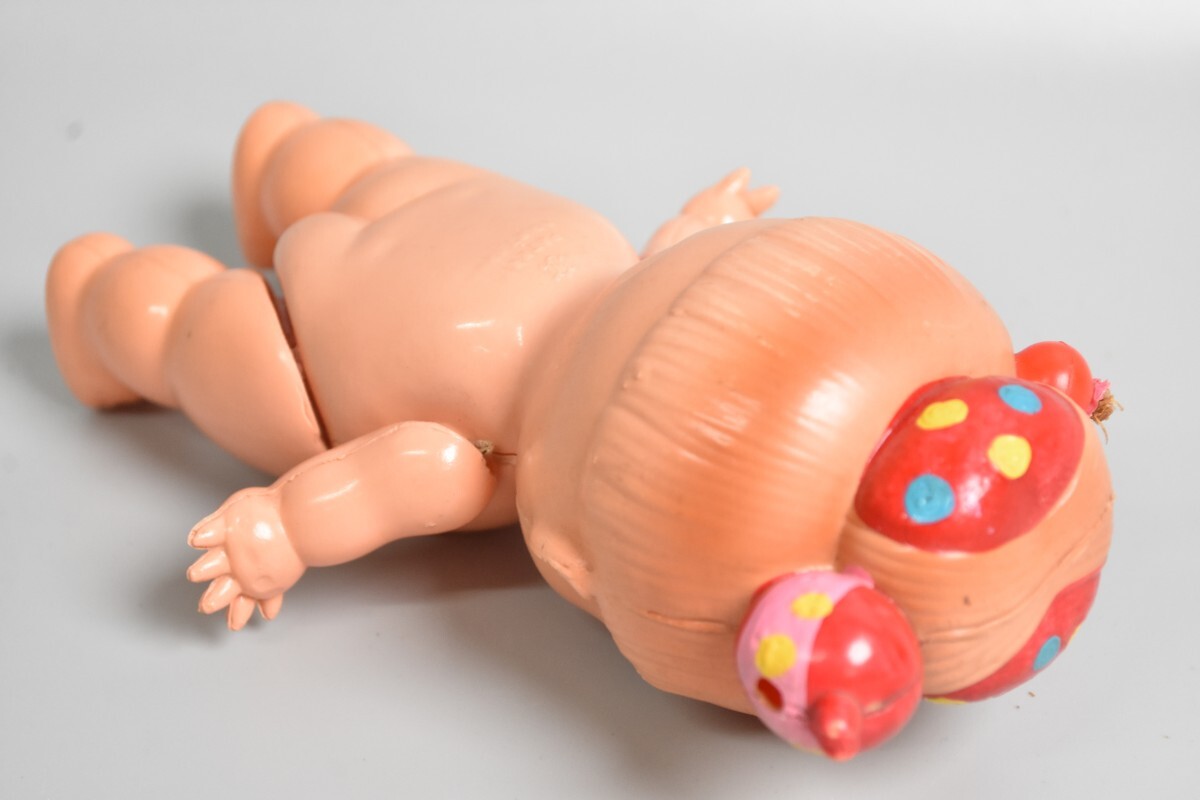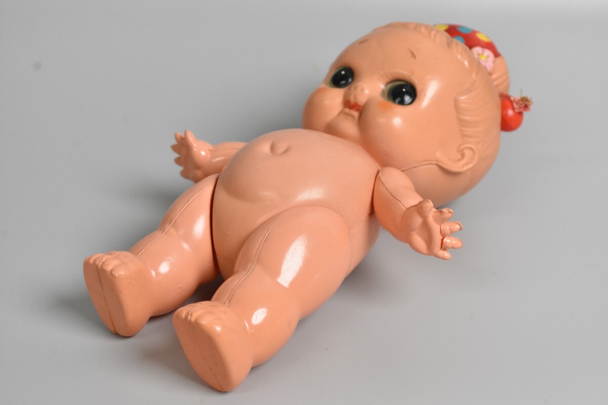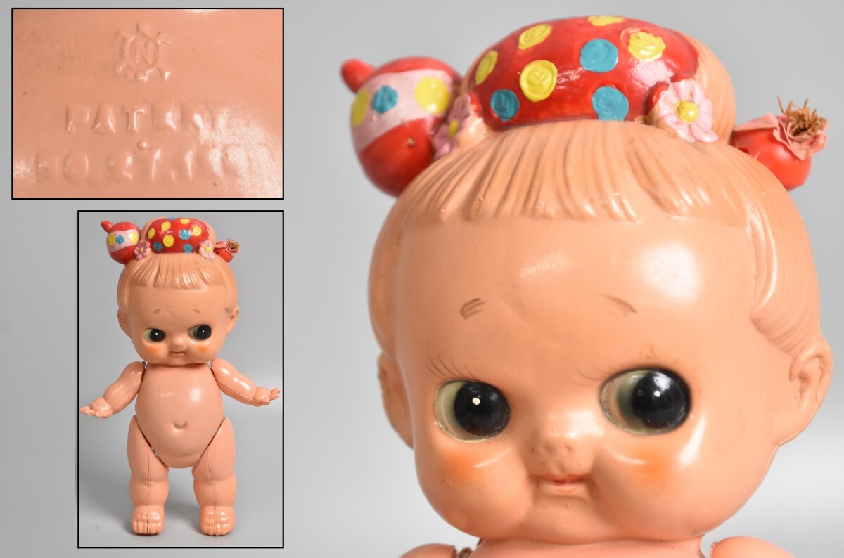 当時物 中嶋製作所 デコちゃん かんざし 簪 セルロイド 人形 三頭身 19cm キューピー 昭和レトロ アンティーク ドール 抱き人形RR-328S/117