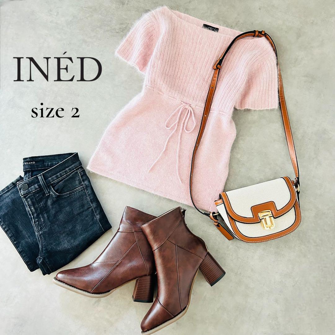 #INED #イネド #アンゴラニット #ふわもこニット #ピンクニット #大人可愛いコーデ #春コーデ #秋コーデ
