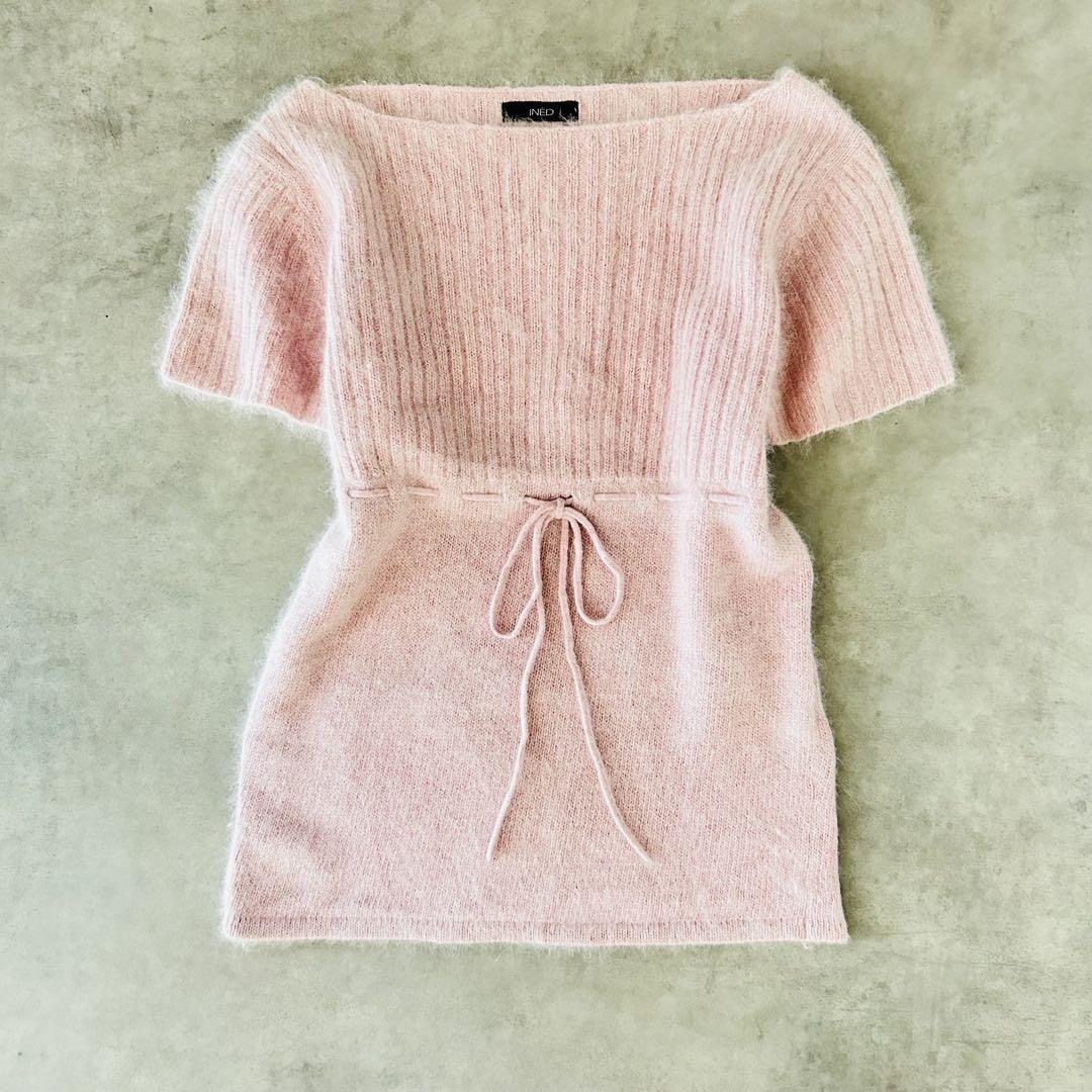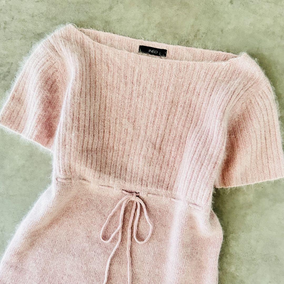 ふんわり柔らかな着心地が魅力の INED(イネド)アンゴラ混ニット。淡いピンクカラーが女性らしく、やさしい雰囲気を演出してくれます。ウエストのリボンでシルエットを調整でき、スタイルアップ効果も◎