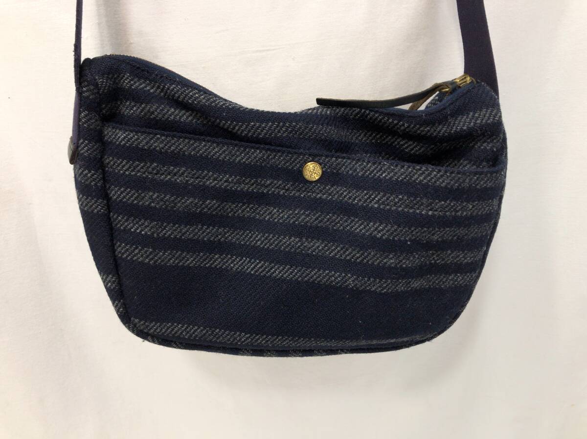 Harris Tweed ハリスツイード NORTH THREE QUARTER EAST ショルダーバッグ ネイビーxグレー ボーダー H1