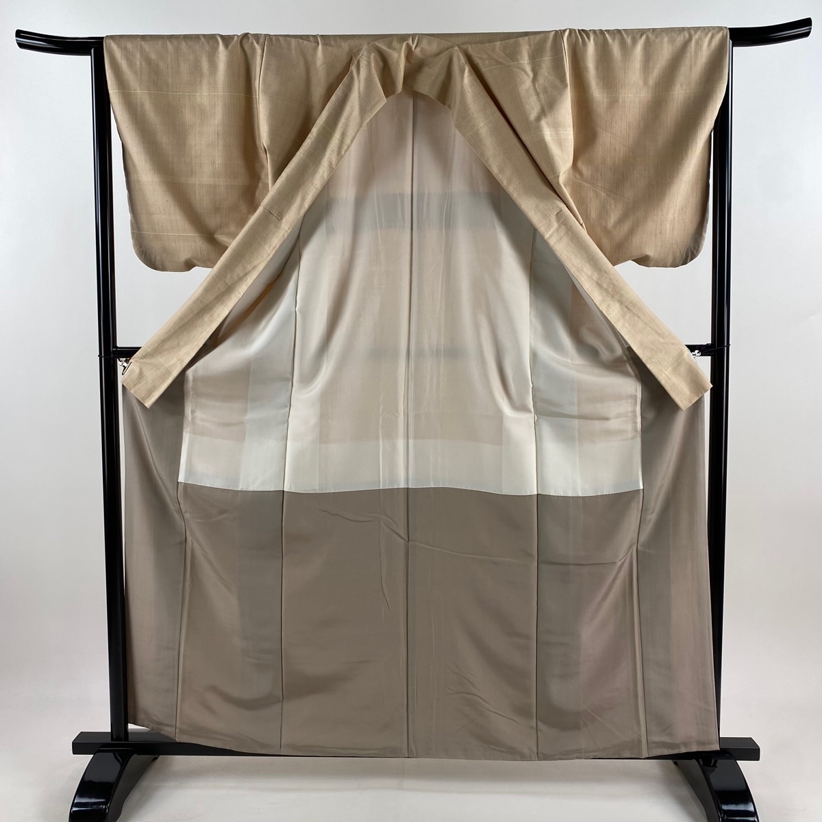 | 紬 美品 秀品 段縞 ベージュ 袷 身丈161 裄丈65 M 正絹 【中古】 |