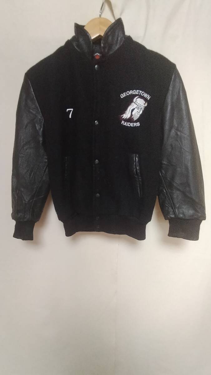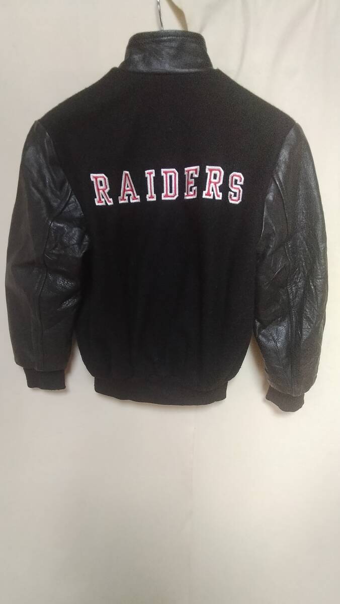 ★ラスベガスレイダース両面刺繍プリントウール袖革スタジャンMADE IN CANADA黒正規品サイズL★