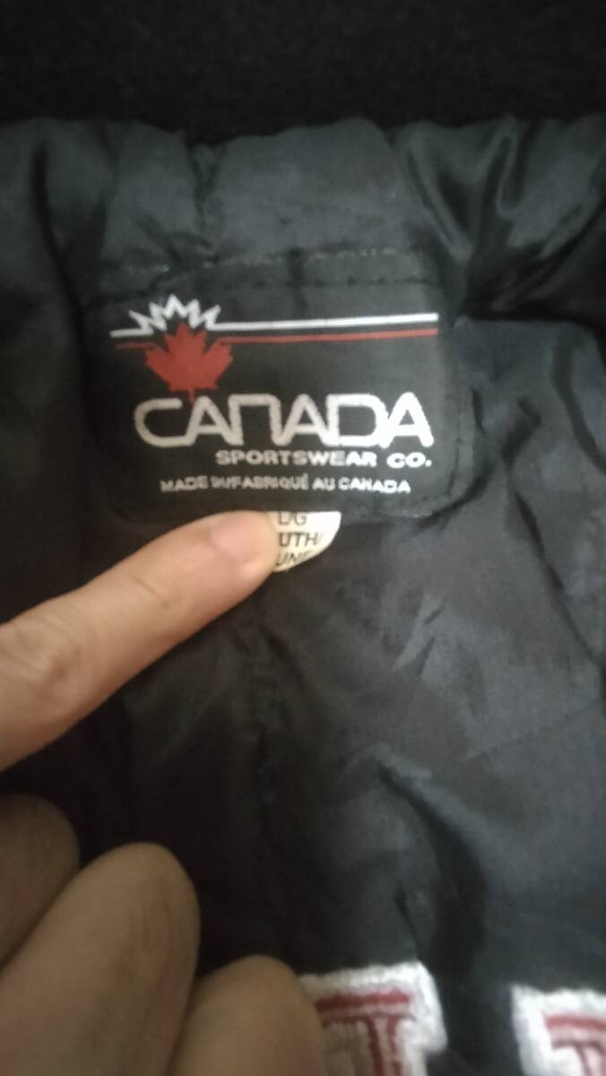 ラスベガスレイダース両面刺繍プリントウール袖革スタジャンMADE IN CANADAです。